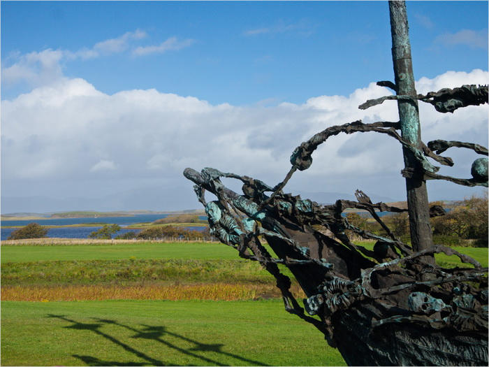 einen Panoramablick über die Clew Bay. Entworfen wurde diese Skulptur von John Behan und soll