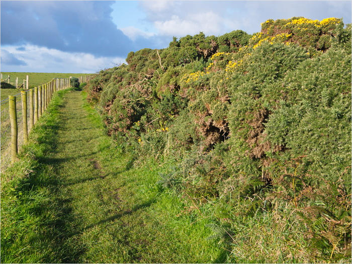 Weg verläuft immer rechts des Zaunes. Der Zaun ist eine Weidezaun, der die dahinter grasenden