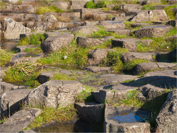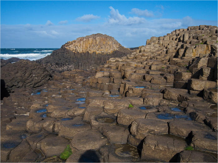 Die Riesensitze, wie die beiden Höcker aus Basaltsäulen genannt werden, ohne Touris zu
