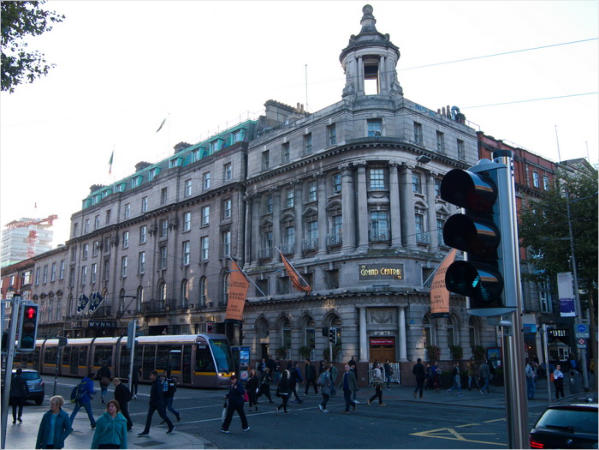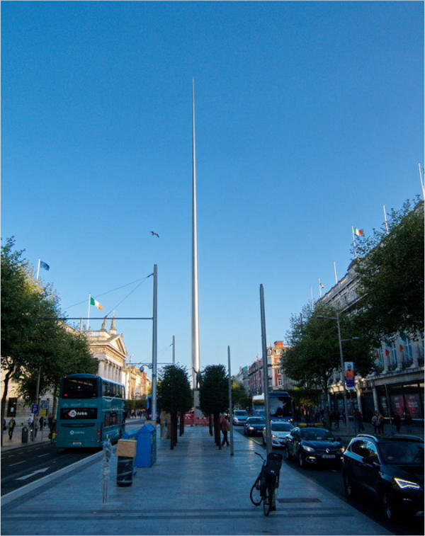 The Spire + schöne Gebäude entland der O‘Connell Street