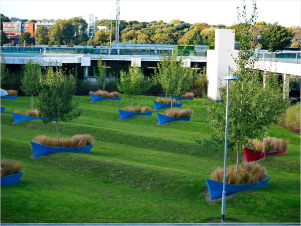mich durch den Park des Museums für Moderne Kunst zu Fuß auf den Weg zur Straßenbahn.