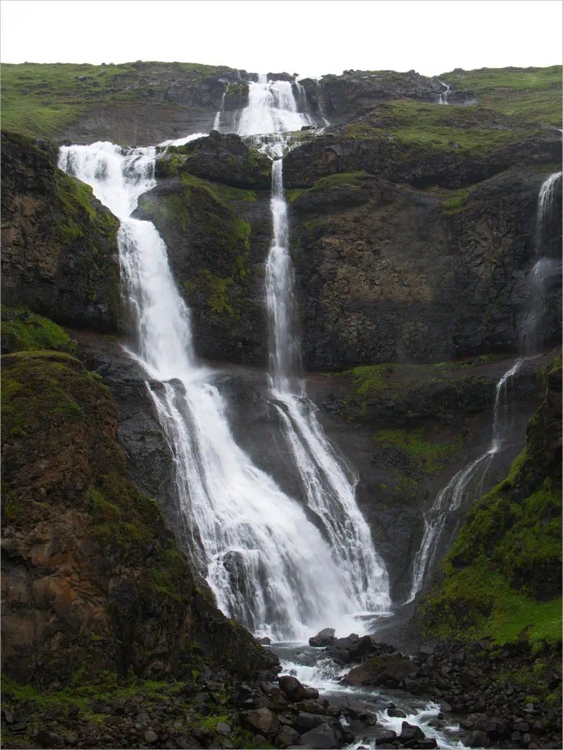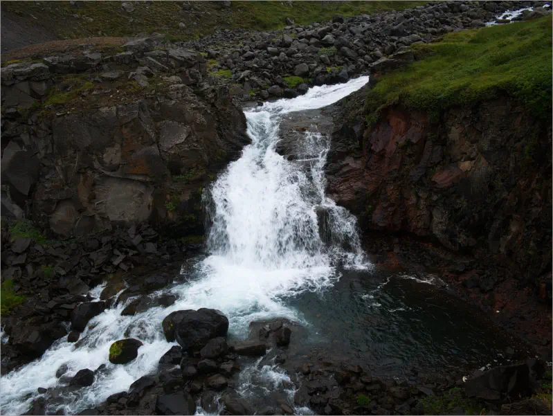 Rjúkandi (sein offizieller Name) ist einer der wenigen großen Wasserfälle auf der Nordseite Islands, der direkt von