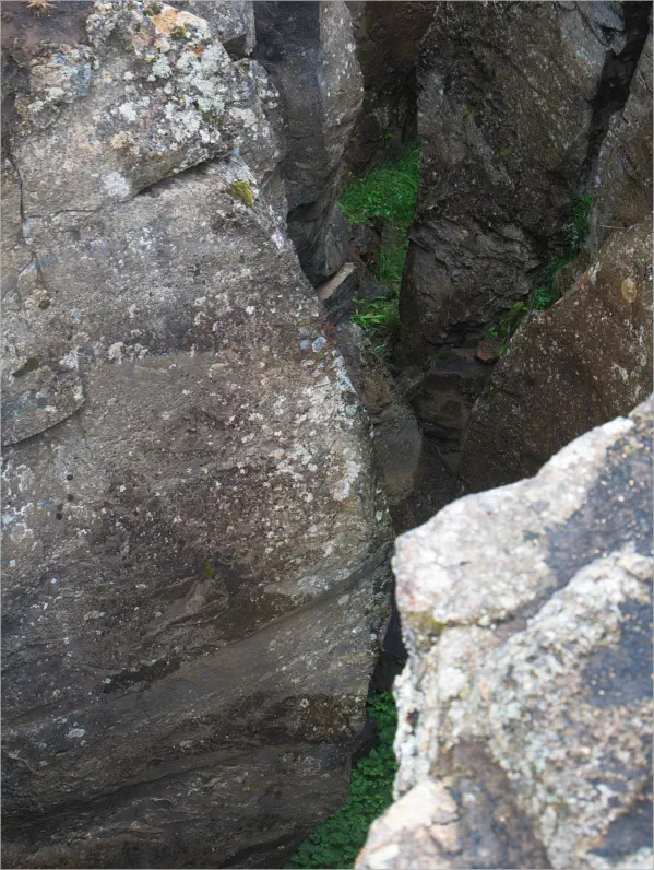 Hier gab es schon mehr zu sehen. Die beiden Spalten waren hier so eng zusammen, dass man mit dem einen Bein