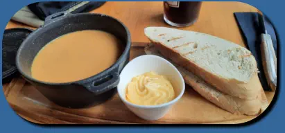 Die bestellte Fischsuppe kam in einer gusseisernen