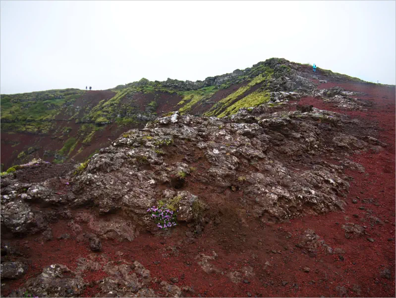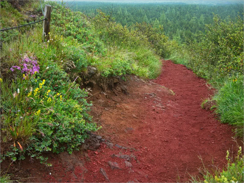Niesel hin, Regen her, wir fanden es klasse, über diese rote Lava zu laufen. Ab und an wuchsen sogar schöne