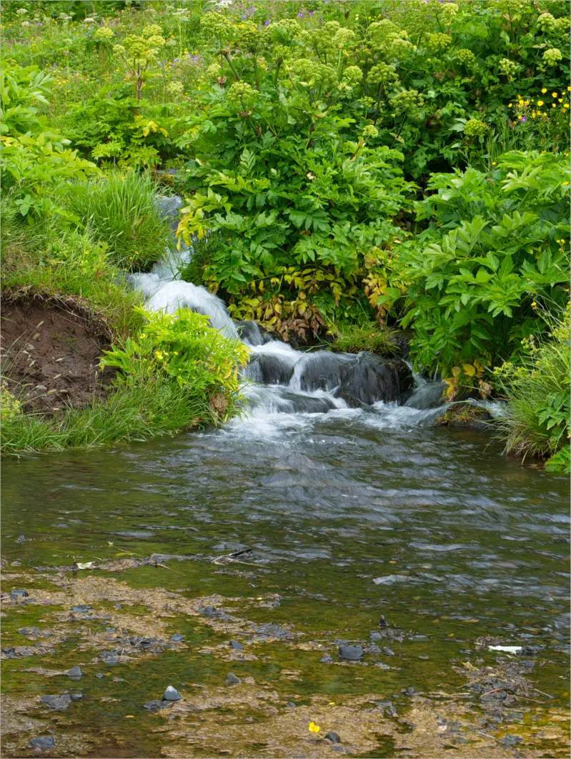 Dieser kleine Wasserfall versteckt sich hinter einer Felsspalte.