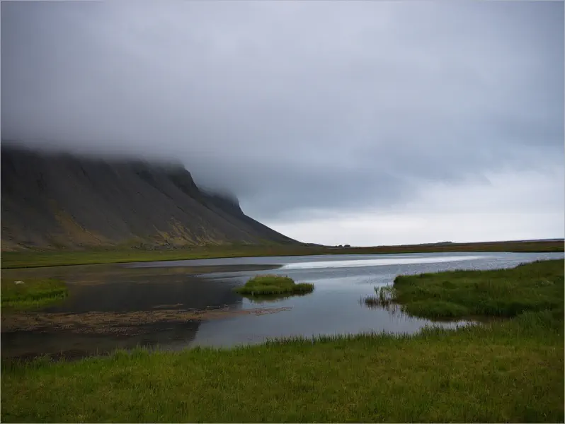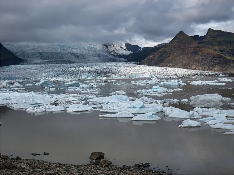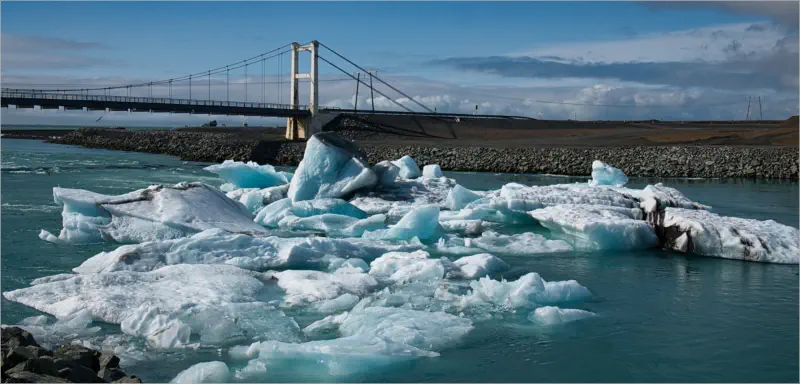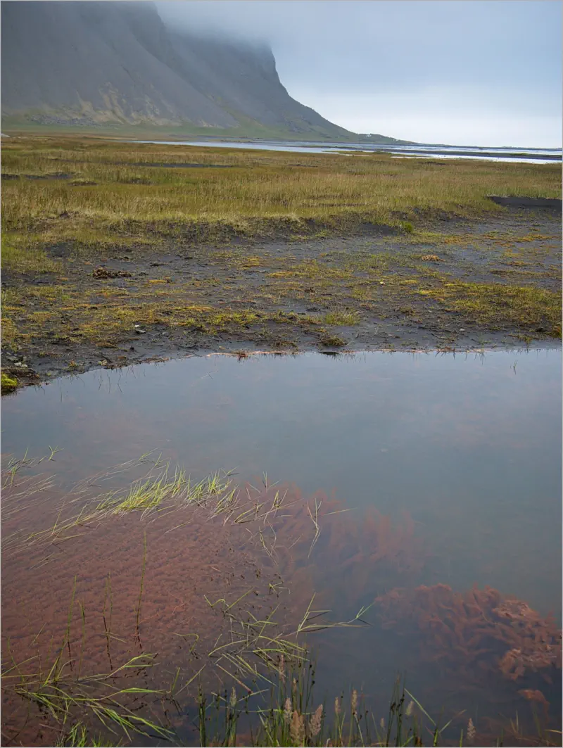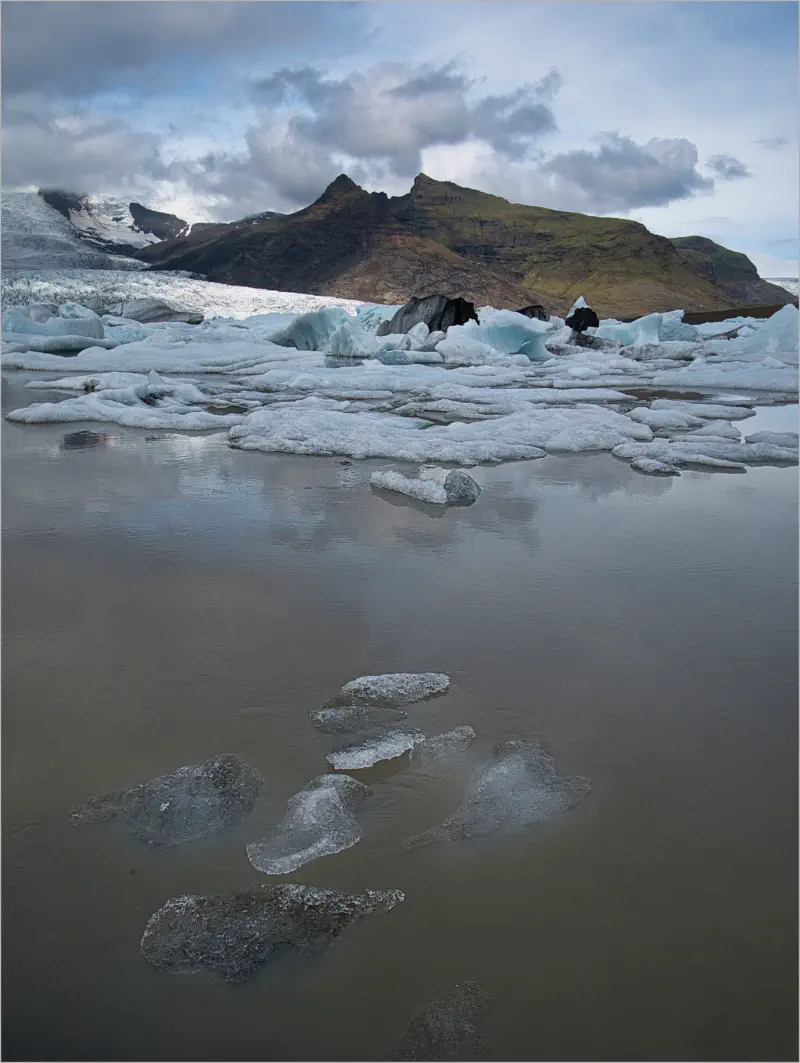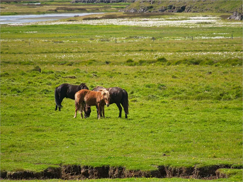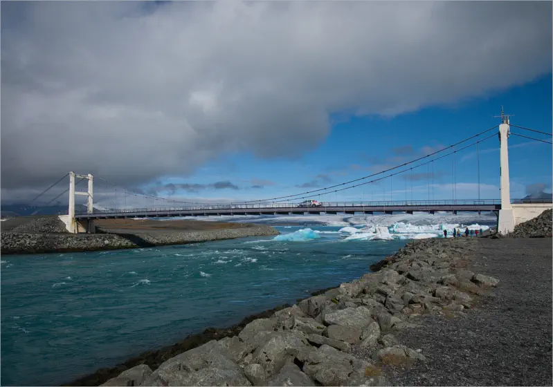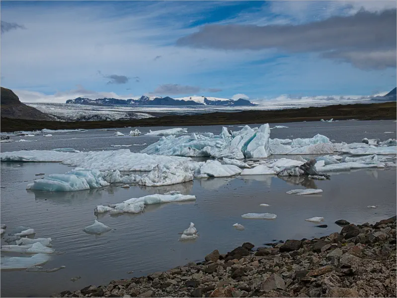 Der Blick aus dem Fenster hatte schon etwas!So gesehen hatte sich das Geld für die Cabin auf jeden Fall gelohnt. Jetzt mussten wir nur noch hoffen, dass uns die zweite Nacht erlassen würde. Diesen Gedanken verschonben wir aber auf später.Mal was in eigener Sache: Fällt es euch auch so schwer, die Isländischen Begriffe und Namen zu behalten? Gabi und ich hatten sie oft schon vergessen, kurz nachdem wir sie gelesen hatten. Was waren wir froh, ein Navi dabei zu haben. Dieses fand alle Punkte unserer Tour sofort. So mussten wir uns nicht mit dieser schwierigen Sprache auseinandersetzen. Sorry!Obwohl es gestern Abend ja recht spät wurde, saßen wir schon um 7:30 Uhr beim Frühstück. Dieses war nicht im Preis imbegriffen. Wir wollten aber keine Zeit mit der Suche nach einem Frühstückscafe verschwenden und blieben daher bei Gerdis. Beim Bezahlen fragten wir auch gleich nach, ob die kostenfreie Stornierung dieser Nacht klargegangen sei. Es wäre alles ok hieß es. Der Manager hätte sich damit einverstanden erklärt. Na das war ja mal ne gute Nachricht. (Bis dann allerdings das Geld auf meinem Konto wieder gutgeschrieben wurde, vergingen mehr als 3 Monate und einige Mails an Booking..com waren nötig). Nach diesem Ausblick verließen wir Gerdi Guesthouse gegen 1/2 9.Ist euch der Himmel aufgefallen? Alles blau mit ein paar kleinen Wölkchen. Wir schwebten im 7. Himmel. So konnte es von uns aus weitergehen.Wie gestern schon stoppten wir, um den mächtigen Gipfel von Hvannadalshnúkur zu bestaunen.Die Nonnengänse schienen wenig beeindruckt und schwammen von dannen. Wir schauten auch dass wir weiterkamen, denn wir wollten heute morgen noch einmal zumHeute war der Parkplatz weitaus belebter. Trotzdem fanden wir noch ein Plätzchen.Der Blick zum Ufer zeigte, dass heute schon richtig was los war am Gletschersee. Kein Wunder bei diesem Kaiserwetter. Ja,……….das hatte was bei schönem Wetter.Kein Wunder, dass unsere Auslöser sofort zu Glühen begannen. Seehunde gab es heute leider keine. Denen war bestimmt zu viel Rummel im und am See und sie blieben daher lieber auf hoher See oder an einem ruhigen Strand.Wir konnten uns gar nicht satt sehen. Aber schaut selbst:Etwas neidisch beobachteten wir, wie andere Touris mit Amphibienfahrzeugen bzw. Zodiacs nahe an die Eisberge heranfuhren. Für solch einen Ausflug fehlte uns leider die Zeit. Dafür würden wir heute aber noch viele andere schöne Sachen zu sehen bekommen, so hofften wir wenigstens. Jetzt schauten wir erst einmal den anderen Touris zu und genossen den Blick aus der Ferne.Es hatte schon was, die Lagune (wie der See auch genannt wird) bei schönem Wetter zu sehen.Allerdings kamen uns die Eisschollen heute viel kleiner vor.Die Eisschollen von gestern Abend waren auf jeden Fall näher an die Brücke herangekommen und im Gegensatz zu gestern, war das Wasser ganz ruhig. Gestern tobte sich hier ein wilder Strudel aus.Auch hinter der Brücke war der Blick noch interessant.Eigentlich hätten wir einfach weiterlaufen können, denn nur ein paar hundert Meter hinter der Brücke lag unser nächstes Ziel. Wir beschlossen aber, doch zum Parkplatz zurückzulaufen und auf die andere Seite zu fahren. Es war zwar gehopst wie gedoppelt, aber wir haben es gemacht und fuhren somit zum Der Strand war wirklich so toll, wie auf den Fotos im Internet. Überall lagen die aus der Lagune herausgespülten Eisschollen auf dem Strand. Es war faszinierend. Aber schaut selbst:Diese Formen weckten unsere Fantasie.Die dunklen Wolken die aus dem Westen über die Insel zogen, drängten uns leider zur Weiterfahrt. Schließlich wollten wir, bevor wir uns endlich weiter nach Osten fahren würden, noch einmal beim kleinen Gletschersee vorbeifahren.Fjallsárlón zeigte sich heute wirklich von seiner schönsten Seite. Wir waren hin und weg…….obwohl wir uns eingestehen mussten, dass die Stimmung gestern viel mystischer war. Heute überwog die Faszination. Der Gletscher war wirklich der totale Wahnsinn. So toll hatten wir ihn gestern nicht im Blick.Obwohl das Wetter heute viel besser war als gestern, war es hier recht ruhig. Die meisten Touris schienen nur den großen Gletschersee zu besuchen. Uns war es recht.Wir genossen hier die Ruhe nach dem Trubel in der großen Lagune.Aber auch hier wurde es so langsam voller. Die meisten Reisegruppen wurden allerdings in die Boote verladen.Von weitem sah das recht lustig aus, wie sie im Schneckentempo in ihren Overalls zu den Booten liefen. Das hatte etwas vom Mork vom Ork, der hatte auch so einen Anzug.Wir machten das Gleiche wie gestern und wanderten etwas am Rande des Sees entlang. Natürlich könnte ich jetzt an dieser Stelle etwas sehr Kluges über das Alter und die Entstehung dieses Gletschers schreiben, aber ich schätze damit ist das www. schon voll davon. Wenn ihr mehr über die Entstehung der isländischen Gletscherwelt wissen möchtet, schaut einfach mal bei Island.de vorbei. Hier findet ihr u.a. kurze und knackige Infos, über Gletscher. und einiges Wissenwertes mehr. Da wir heute noch einiges vorhatten, mussten wir langsam schauen, dass wir weiterkamen. Leicht fiel es uns nicht. Der Wahnsinn, oder?!Hier ein letzter Blick. Wir mussten wirklich weiter.Gen Osten veränderte sich die Landschaft schlagartig.Die Gletscherlandschaft mit ihren kargen Böden hatten wir hinter uns gelassen. Jetzt grünte es nur so vor sich hin. Fast kam ich mir schon vor wie in Irland. An einem besonders hübsch aussehenden Picknickplatz stoppten wir. Das es hier einen roten Fluss gab, sahen wir erst nachdem wir ausgestiegen waren. Sehr fotogen! Oder?Von hier aus konnten wir nicht nur Schafe sondern auch die ersten Island Pferde auf freiem Feld fotografieren. Was für ein Paradies.Pjódvegur heißt wohl die Straße, die hinter dem kleinen Picknickplatz weitgergeht. Mehr konnte ich nicht herausfinden. Leider hatten wir gestern Abend unsere Vorräte verputzt, sonst hätten wir uns hier für ein kleines Picknick niedergelassen. So fuhren wir hungrig