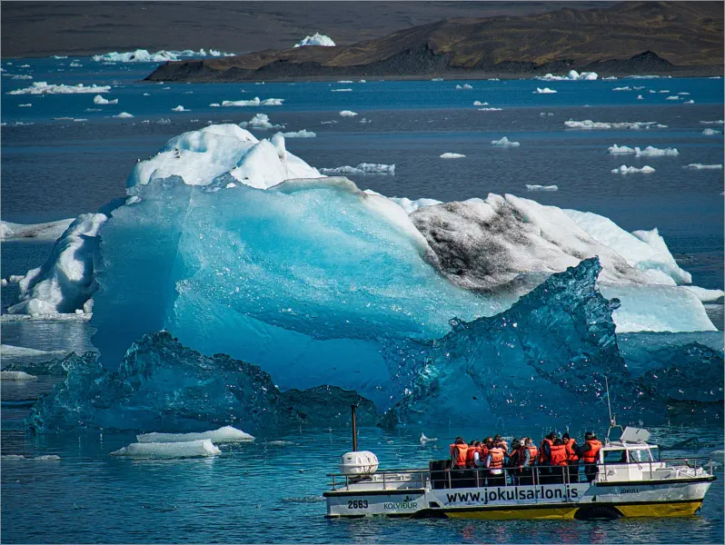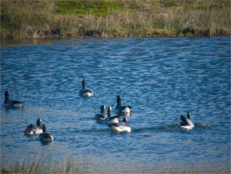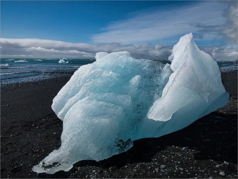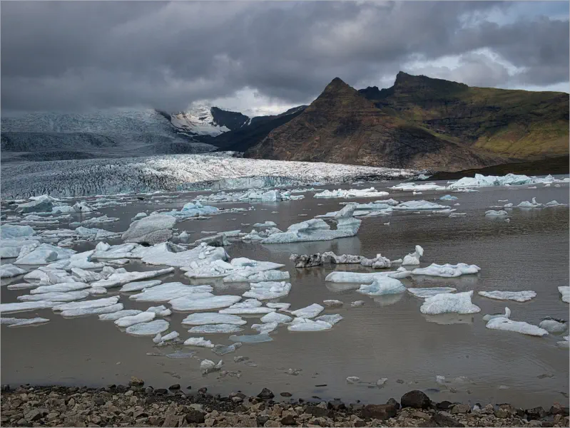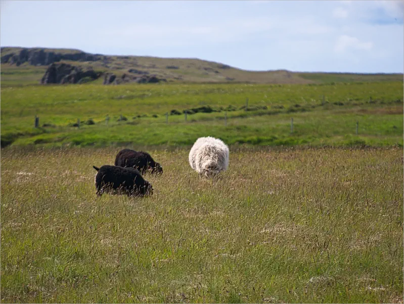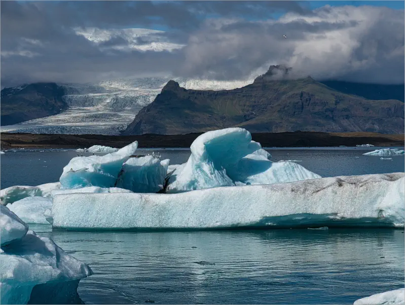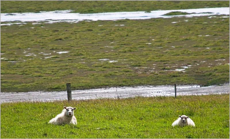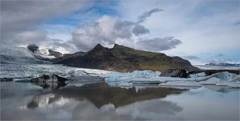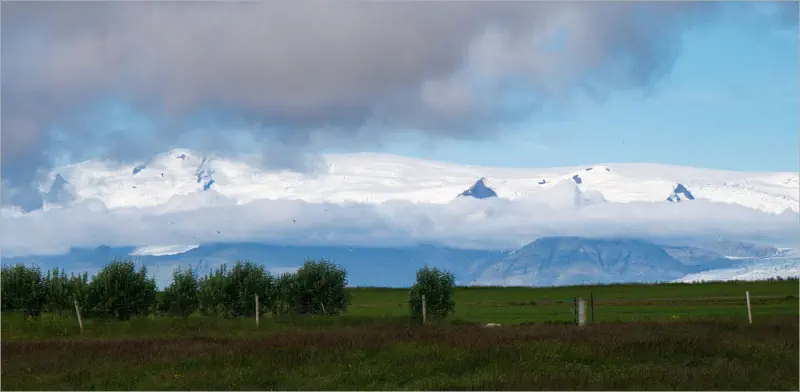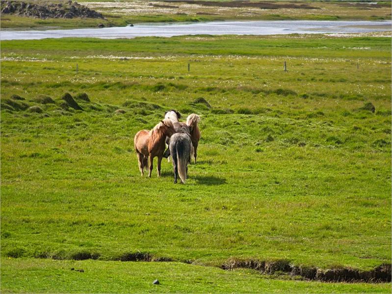 Der Blick aus dem Fenster hatte schon etwas!So gesehen hatte sich das Geld für die Cabin auf jeden Fall gelohnt. Jetzt mussten wir nur noch hoffen, dass uns die zweite Nacht erlassen würde. Diesen Gedanken verschonben wir aber auf später.Mal was in eigener Sache: Fällt es euch auch so schwer, die Isländischen Begriffe und Namen zu behalten? Gabi und ich hatten sie oft schon vergessen, kurz nachdem wir sie gelesen hatten. Was waren wir froh, ein Navi dabei zu haben. Dieses fand alle Punkte unserer Tour sofort. So mussten wir uns nicht mit dieser schwierigen Sprache auseinandersetzen. Sorry!Obwohl es gestern Abend ja recht spät wurde, saßen wir schon um 7:30 Uhr beim Frühstück. Dieses war nicht im Preis imbegriffen. Wir wollten aber keine Zeit mit der Suche nach einem Frühstückscafe verschwenden und blieben daher bei Gerdis. Beim Bezahlen fragten wir auch gleich nach, ob die kostenfreie Stornierung dieser Nacht klargegangen sei. Es wäre alles ok hieß es. Der Manager hätte sich damit einverstanden erklärt. Na das war ja mal ne gute Nachricht. (Bis dann allerdings das Geld auf meinem Konto wieder gutgeschrieben wurde, vergingen mehr als 3 Monate und einige Mails an Booking..com waren nötig). Nach diesem Ausblick verließen wir Gerdi Guesthouse gegen 1/2 9.Ist euch der Himmel aufgefallen? Alles blau mit ein paar kleinen Wölkchen. Wir schwebten im 7. Himmel. So konnte es von uns aus weitergehen.Wie gestern schon stoppten wir, um den mächtigen Gipfel von Hvannadalshnúkur zu bestaunen.Die Nonnengänse schienen wenig beeindruckt und schwammen von dannen. Wir schauten auch dass wir weiterkamen, denn wir wollten heute morgen noch einmal zumHeute war der Parkplatz weitaus belebter. Trotzdem fanden wir noch ein Plätzchen.Der Blick zum Ufer zeigte, dass heute schon richtig was los war am Gletschersee. Kein Wunder bei diesem Kaiserwetter. Ja,……….das hatte was bei schönem Wetter.Kein Wunder, dass unsere Auslöser sofort zu Glühen begannen. Seehunde gab es heute leider keine. Denen war bestimmt zu viel Rummel im und am See und sie blieben daher lieber auf hoher See oder an einem ruhigen Strand.Wir konnten uns gar nicht satt sehen. Aber schaut selbst:Etwas neidisch beobachteten wir, wie andere Touris mit Amphibienfahrzeugen bzw. Zodiacs nahe an die Eisberge heranfuhren. Für solch einen Ausflug fehlte uns leider die Zeit. Dafür würden wir heute aber noch viele andere schöne Sachen zu sehen bekommen, so hofften wir wenigstens. Jetzt schauten wir erst einmal den anderen Touris zu und genossen den Blick aus der Ferne.Es hatte schon was, die Lagune (wie der See auch genannt wird) bei schönem Wetter zu sehen.Allerdings kamen uns die Eisschollen heute viel kleiner vor.Die Eisschollen von gestern Abend waren auf jeden Fall näher an die Brücke herangekommen und im Gegensatz zu gestern, war das Wasser ganz ruhig. Gestern tobte sich hier ein wilder Strudel aus.Auch hinter der Brücke war der Blick noch interessant.Eigentlich hätten wir einfach weiterlaufen können, denn nur ein paar hundert Meter hinter der Brücke lag unser nächstes Ziel. Wir beschlossen aber, doch zum Parkplatz zurückzulaufen und auf die andere Seite zu fahren. Es war zwar gehopst wie gedoppelt, aber wir haben es gemacht und fuhren somit zum Der Strand war wirklich so toll, wie auf den Fotos im Internet. Überall lagen die aus der Lagune herausgespülten Eisschollen auf dem Strand. Es war faszinierend. Aber schaut selbst:Diese Formen weckten unsere Fantasie.Die dunklen Wolken die aus dem Westen über die Insel zogen, drängten uns leider zur Weiterfahrt. Schließlich wollten wir, bevor wir uns endlich weiter nach Osten fahren würden, noch einmal beim kleinen Gletschersee vorbeifahren.Fjallsárlón zeigte sich heute wirklich von seiner schönsten Seite. Wir waren hin und weg…….obwohl wir uns eingestehen mussten, dass die Stimmung gestern viel mystischer war. Heute überwog die Faszination. Der Gletscher war wirklich der totale Wahnsinn. So toll hatten wir ihn gestern nicht im Blick.Obwohl das Wetter heute viel besser war als gestern, war es hier recht ruhig. Die meisten Touris schienen nur den großen Gletschersee zu besuchen. Uns war es recht.Wir genossen hier die Ruhe nach dem Trubel in der großen Lagune.Aber auch hier wurde es so langsam voller. Die meisten Reisegruppen wurden allerdings in die Boote verladen.Von weitem sah das recht lustig aus, wie sie im Schneckentempo in ihren Overalls zu den Booten liefen. Das hatte etwas vom Mork vom Ork, der hatte auch so einen Anzug.Wir machten das Gleiche wie gestern und wanderten etwas am Rande des Sees entlang. Natürlich könnte ich jetzt an dieser Stelle etwas sehr Kluges über das Alter und die Entstehung dieses Gletschers schreiben, aber ich schätze damit ist das www. schon voll davon. Wenn ihr mehr über die Entstehung der isländischen Gletscherwelt wissen möchtet, schaut einfach mal bei Island.de vorbei. Hier findet ihr u.a. kurze und knackige Infos, über Gletscher. und einiges Wissenwertes mehr. Da wir heute noch einiges vorhatten, mussten wir langsam schauen, dass wir weiterkamen. Leicht fiel es uns nicht. Der Wahnsinn, oder?!Hier ein letzter Blick. Wir mussten wirklich weiter.Gen Osten veränderte sich die Landschaft schlagartig.Die Gletscherlandschaft mit ihren kargen Böden hatten wir hinter uns gelassen. Jetzt grünte es nur so vor sich hin. Fast kam ich mir schon vor wie in Irland. An einem besonders hübsch aussehenden Picknickplatz stoppten wir. Das es hier einen roten Fluss gab, sahen wir erst nachdem wir ausgestiegen waren. Sehr fotogen! Oder?Von hier aus konnten wir nicht nur Schafe sondern auch die ersten Island Pferde auf freiem Feld fotografieren. Was für ein Paradies.Pjódvegur heißt wohl die Straße, die hinter dem kleinen Picknickplatz weitgergeht. Mehr konnte ich nicht herausfinden. Leider hatten wir gestern Abend unsere Vorräte verputzt, sonst hätten wir uns hier für ein kleines Picknick niedergelassen. So fuhren wir hungrig
