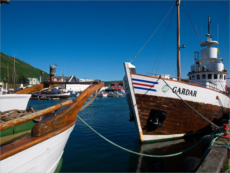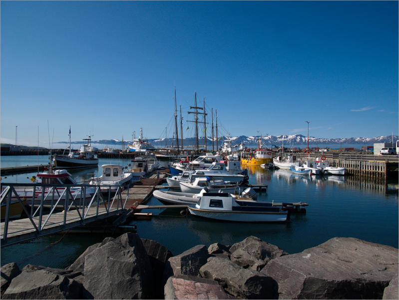 Husavik war schon sehr hübsch. Dieser kleine Hafen mit den vielen Holzbooten und die schneebedeckten