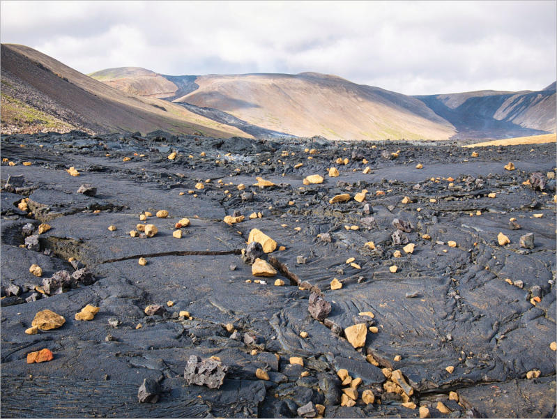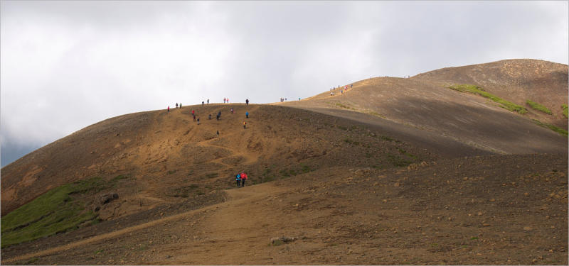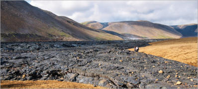 zu gehen, denn 1. würde hinter dem Hügel die Sonne scheinen, 2. wäre es dort viel wärmer und 3. hätten wir so frische Lava, die