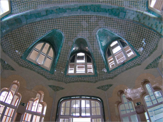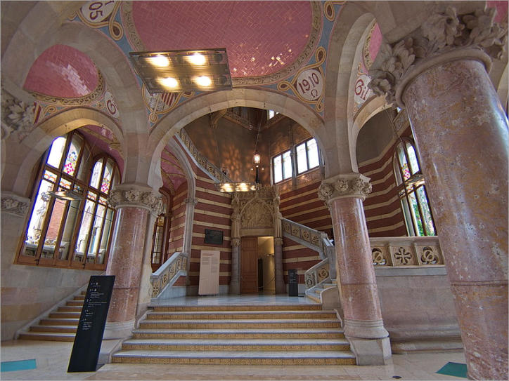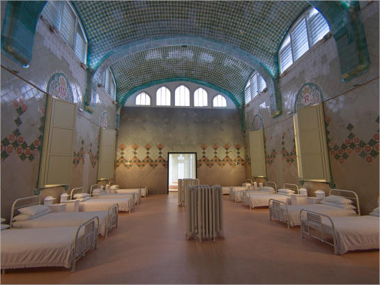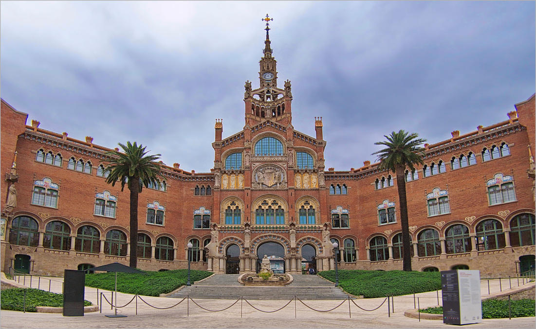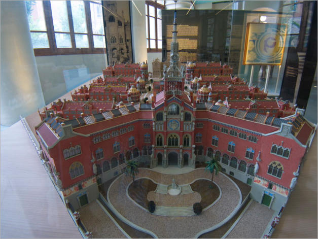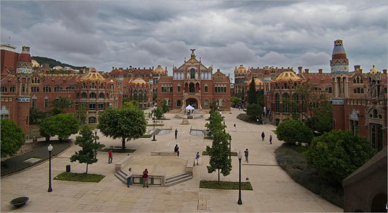 Dieser Klinikkomplex ist von 1902 - 1911 vom gleichen Architekten wie der „Palau de la Musica Catalana", Lluis Domènech i Montaner im katalanischen