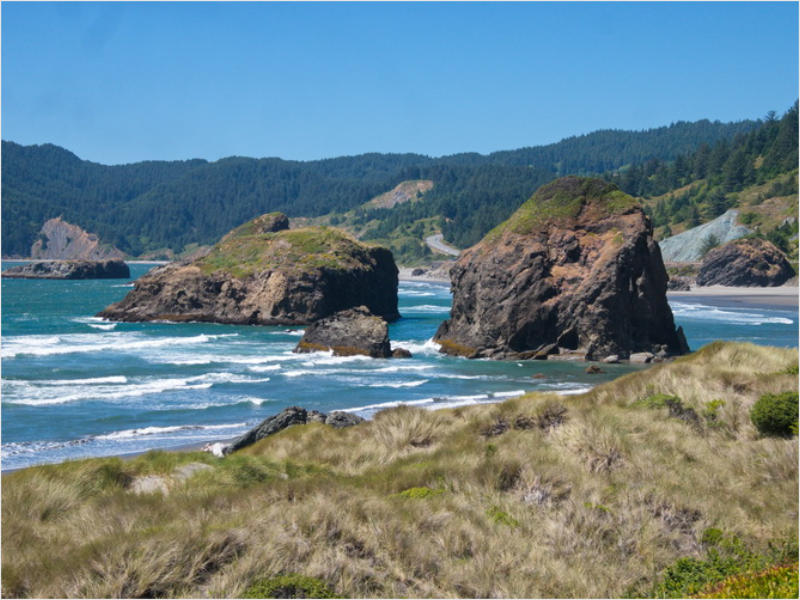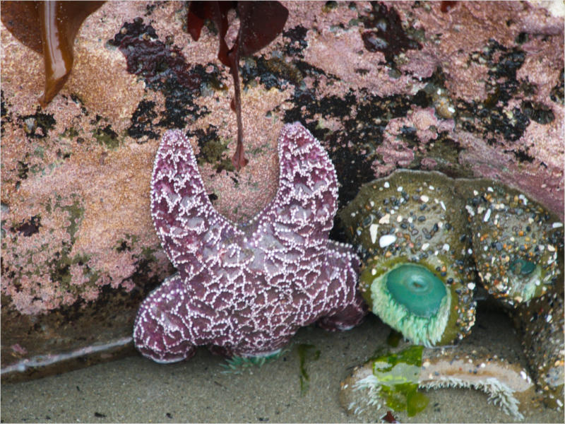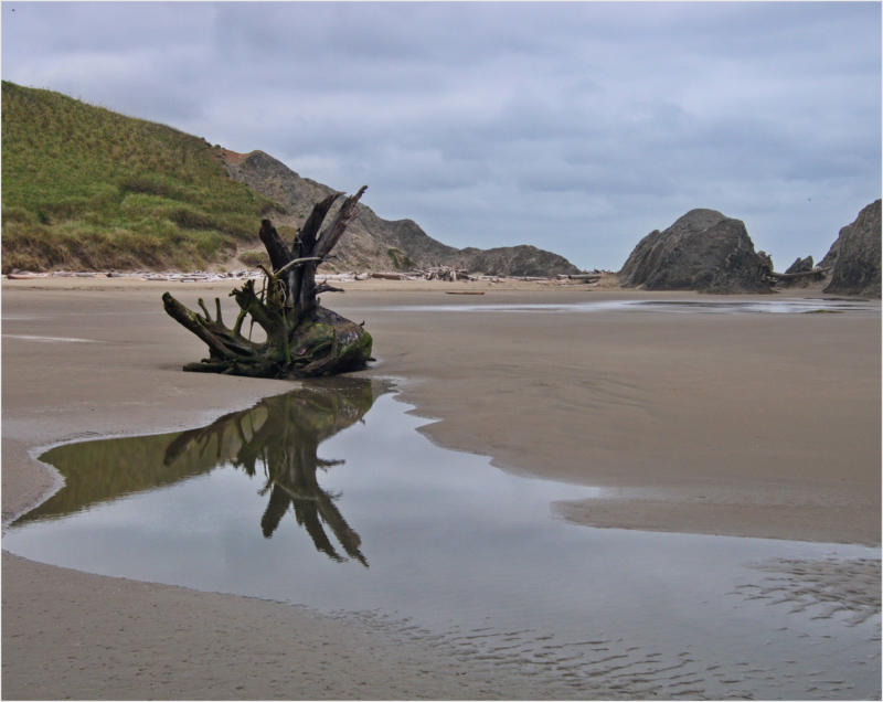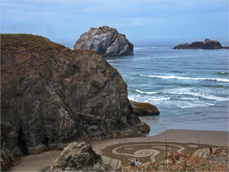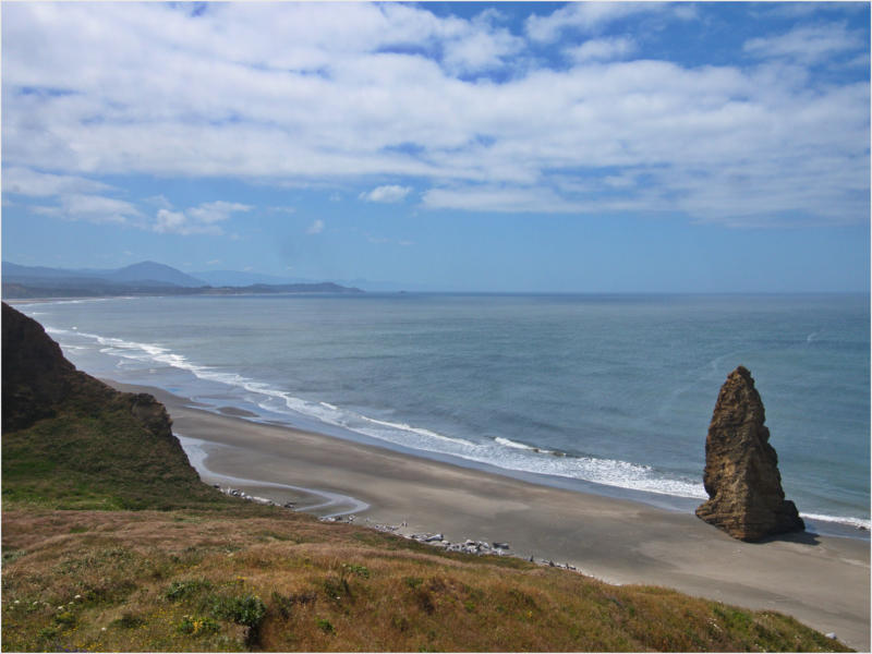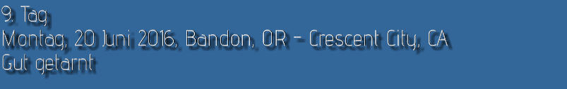 Wahnsinn wie die Zeit vergeht! War heute wirklich schon mein 9. Urlaubstag?Als ich aus dem Fenster schaute, musste ich leider feststellen, dass mich heute wohl das Wetterglück verlassen hatte. Ich hatte es gestern Abend schon vermutet, denn bei Vollmond schlägt das Wetter gerne mal um. So war heute Morgen alles grau in grau. Zuerst konnte ich mich gar nicht aufraffen, dann bin ich aber doch noch zum Strand und zu den Tidepools (Danke Toni). Hier gab es massenhaft Seesterne und Anemonen. Leider keine schönen Korallen, dafür aber einen sehr gut getarnten Seal, später sogar noch einen und Sealbabys. Die Aufnahmen von denen sind leider verwackelt. Am Strand bin ich mit einem der Vogelbeobachter ins Gespräch gekommen, denn viele Stellen waren mit kleinen Fähnchen abgesperrt. Er fühlte sich daher verpflichtet, mir die schönsten Seesterne zu zeigen und auch den Harbour Seal, den ich ohne seine Hilfe gar nicht bemerkt hätte, so gut war er getarnt. Trotz des schlechten Wetters lief ich dann noch eine ganze Weile den Strand entlang. Hier gab es wirklich haufenweise Seesterne. So viele habe ich noch nie gesehen! Ich hätte nie gedacht, dass ich bei so blödem Wetter meinen Kameraauslöser zum Glühen bringen würde.Selbst der Strand musste sich trotz des blöden Wetters nicht verstecken.Er war wirklich superschön. Bei Sonnenschein hätte ich hier sicherlich den ganzen Vormittag vertrödelt. Als ich zum Abschluss meiner Strandtour noch einmal bei dem Vogelschützer vorbei bin hat er mir einen kleinen Sanddollar, eigentlich einen Sandcent, geschenkt. Ist das nicht klasse?!?Eins war klar, auch wenn ich mit dem Wetter heute morgen nicht so richtig Glück hatte, die Tiedepools und die Seals haben mich allemal für die schlechte Sicht entschädigt. Zurück im Motel habe ich erst einmal meine Füße vom Sand befreit und festes, trockenes Schuhwerk angezogen, denn inzwischen hatte ich echt Eisfüßchen. Irgendwann hatte ich es aufgegeben am Strand die Pfützen zu umrunden und latschte einfach durch. Nachdem ich in trocknen Schuhen war belud ich das Auto und ging auf die andere Straßenseite ins Cafe. Hier war der Teufel los! Das Warten lohnte sich allerdings, denn der frisch zubereitete Bagel und der Cappuchino waren richtig lecker. Frisch gestärkt fuhr ich zum Aussichtspunkt vom Facerock. Inzwischen war es schon ½ 11 durch, so langsam musste ich mich sputen. Neben dem Ausblick gab es auch noch Kunst am Strand. Ich fand es schon sehr beeindruckend. Schade, dass sie so vergänglich ist. Was für ne tolle Idee! Dieses Bewegungsprogramm sollte sich der Künstler patentieren lassen, denn viele Besucher spazierten den Weg entlang durch das Motiv. Mir blieb leider keine Zeit dazu.Erst kurz vor 11:00 Uhr verließ ich Bandon. Da das Wetter immer noch nicht besser war, kam ich gut voran. Bis ich dann an meinem nächsten Ziel angekommen war, zeigte sich dort tatsächlich die Sonne. Trödeln ist halt manchmal auch für etwas gut.Schon vom Parkplatz aus konnte ich erkennen, dass Menschen oben im Turm waren. Sollte ich jetzt wirklich zu meiner ersten etwas höheren Turmbesteigung kommen? Der einzige Turm, in den in bisher hinein gekommen war, war ja der vom kleinen Cape Mears Lighthouse und der war kaum der Rede wert. Im kleinen Visitor Center musste ich nur meinen Annual Pass vorzeigen und schon wurde mir das Eintrittsgeld von 2,5 $ erlassen. Hier erfuhr ich, dass das Cape Blanco Lighthouse der älteste Leuchtturm an der Oregon Küste ist. Mit seinen 18 Metern Höhe zählt er sicher auch mit zu den höchsten. Auf jeden Fall steht er aber am westlichsten Zipfel von Oregon. Erstaunlich spät, nämlich erst 1980, wurde der Leuchtturm automatisiert. Bevor ich in den Leuchtturm hinein ging, fotografierte ich diese Schönheit erst einmal ausgiebig von allen Seiten. Letztendlich zeigte sich sogar blauer Himmel. Mein Timing stimmte also wieder. Im Leuchtturm bei der noch im Betrieb stehenden Linse war es erstaunlich geräumig. Dort tat ein in einer Keepers-Uniform gekleideter Volunteer Dienst. Dieser war so in ein Gespräch mit einem Ehepaar aus NYC vertieft, dass ich in Ruhe mir alles anschauen konnte, ohne einem weiteren Vortrag über die Linse lauschen zu müssen. Wow, das war wirklich beeindruckend!Noch völlig geflasht von diesem tollen Leuchtturm zog ich von dannen.Schon auf dem Weg zum Leuchtturm waren mir Hinweisschilder zu einer Homestead und einem Pioneer Friedhof aufgefallen. Diese wollte ich jetzt noch besuchen. Vorher blieb ich aber bei den vielen bunten Blümchen hängen, denn hier blühte und grünte es was das Zeug hält. Ich war mal wieder hin und weg. Schade nur, dass es so windig war, denn es war dadurch richtig schwierig, die zu fotografieren. Ich kam anschließend als Erstes am Friedhof vorbei. Viele Gräber gab es hier nicht. Dafür waren aber die wenigen noch vorhandenen Grabsteine recht gut erhalten. Die hier begrabenen Siedler kamen alle aus der Gegend um Cork, Irland und waren sehr alt geworden. Was zu dieser Zeit schon sehr erstaunlich war. Nach diesem kurzen Abstecher fuhr ich weiter zur Homestead. Erwartet hatte ich ein Ranchgebäude, deshalb war ich sehr erstaunt, hier so eine Art Herrenhaus zu erblicken. Das 1898 erbaute Patrick und Jane Hughes House ist schon ein beeindruckendes Gebäude. Es ist ein gutes Beispiel für das, was man den Stil der Königin Anne/Eastlake nennen kann. Patrick und Jane Hughes lebten hier mehr als 30 Jahre mit ihren sieben Kindern. Einer der Söhne war lange Zeit als Lighthouse-Keeper im Cape Blanco Lighthouse tätig. Die letzten Nachkommen lebten noch bis 1971 hier. Danach wurde das Haus vom Staat Oregon erworben, der es in den Cape Blanco SP eingliederte. Genug der Worte. Lasst uns schauen wie es innen aussieht.Schon als ich durch die Eingangstür trat hörte ich, wie sich zwei Frauen unterhielten. Höflich wie ich bin, ging ich direkt zu ihnen in die Küche. Die beiden waren so in ihr Gespräch vertieft, dass sie sich gerne davon überheugen ließen mi