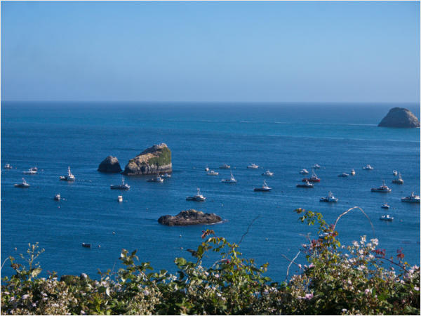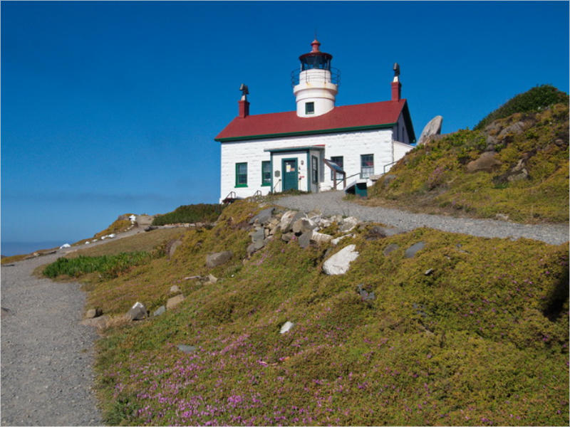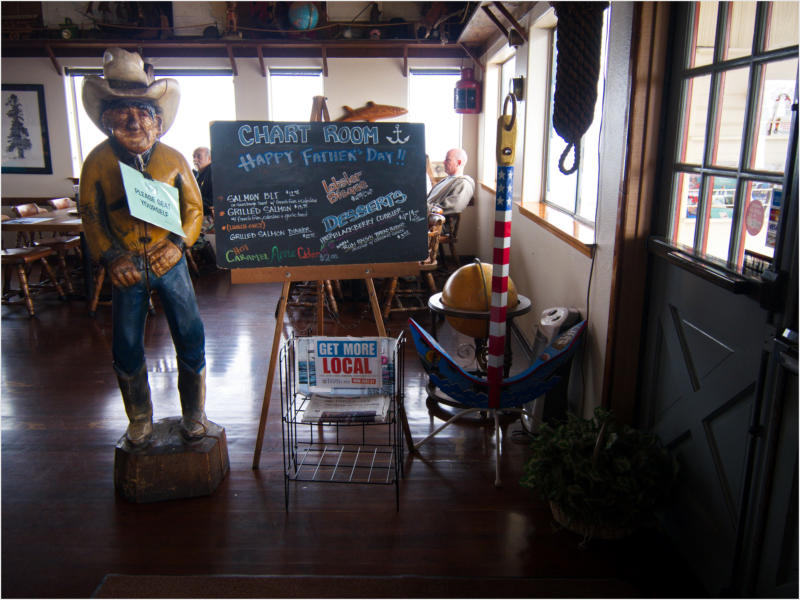 Das Letzte: Wie schon während der ganzen Reise ließ ich mich auch heute treiben. Schön ist es, wenn man nicht so weite Strecken fahren muss.Meilen: 120Wetter: Morgens sonnig/neblig bei 15 °C., mittags sonnig, so um die 20 °C. Ohne Wind kam es mir viel wärmer vor.Motel: Super 8 Motel, Eureka, CA ++½ (Abzug wegen der unschönen Nachbarschaft)Das Motel ist schon etwas in die Jahre gekommen. Das Zimmer war aber sauber, das Bett bequem und eine Kaffeemaschine gab es auch. Eine Klimaanlage wäre nicht schlecht gewesen. Im Sommer wollte ich hier nicht wohnen. Jetzt war es aber o.k. Das Frühstück war in einem ehemaligen Zimmer im Erdgeschoss untergebracht. Daher gab es etwas mehr Sitzplätze als normalerweise bei Super 8 Abendessen: Die gesammelten Reste auf der Speisekarte. Es gab noch ein 1/2 Krabbensandwich, je ein Stückchen Käse und Salami sowie sehr leckeren Kohlsalat.Fotos: Crescent City im Nebel, Fern Canyon Trail, Redwood NP, Trinidad Head Memorial Lighthouse