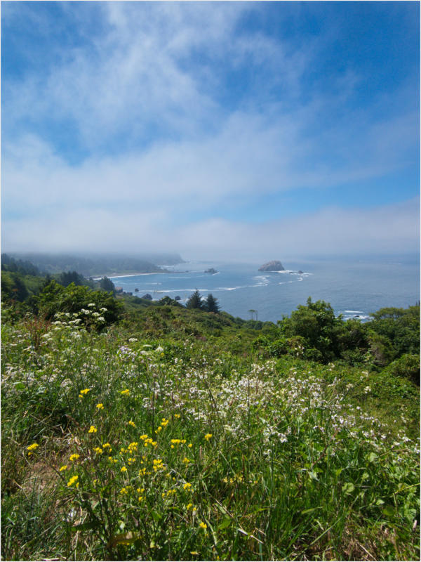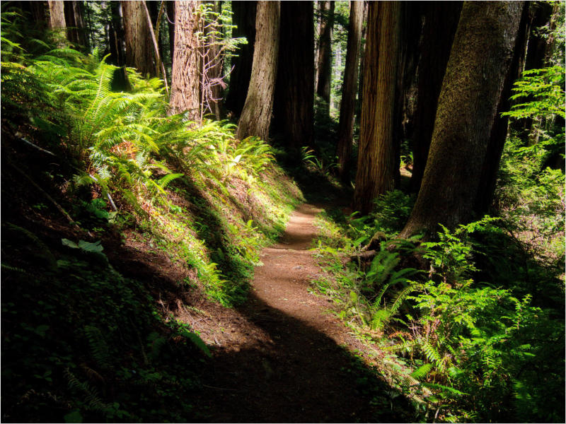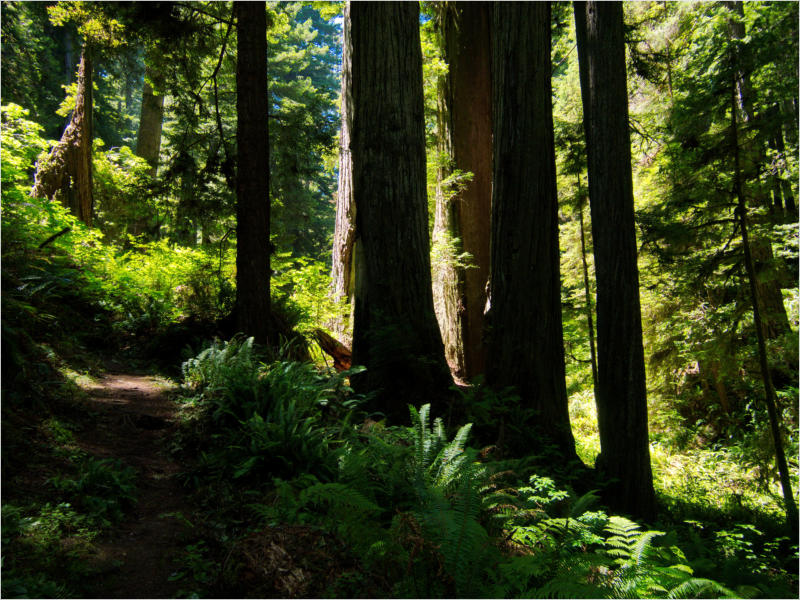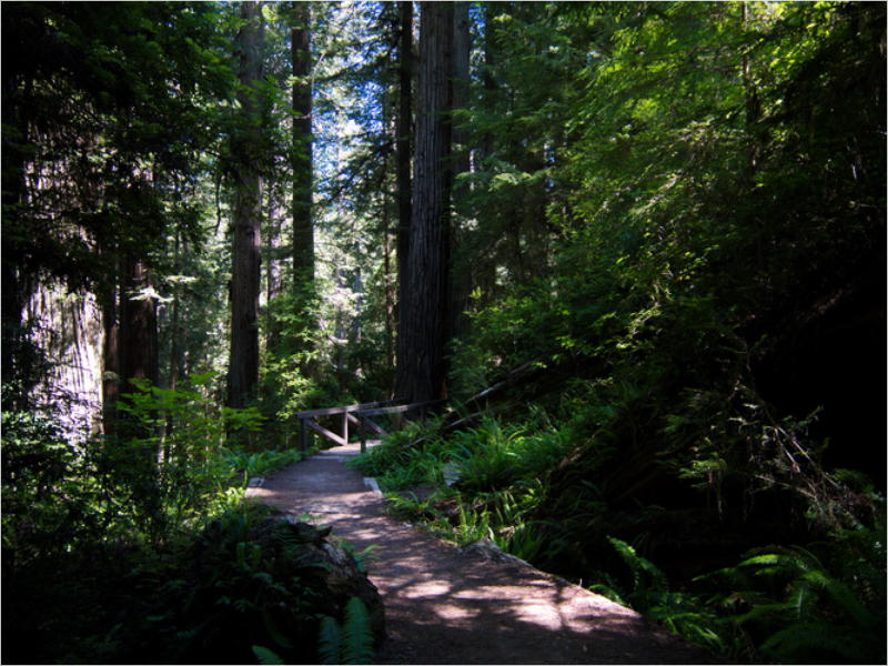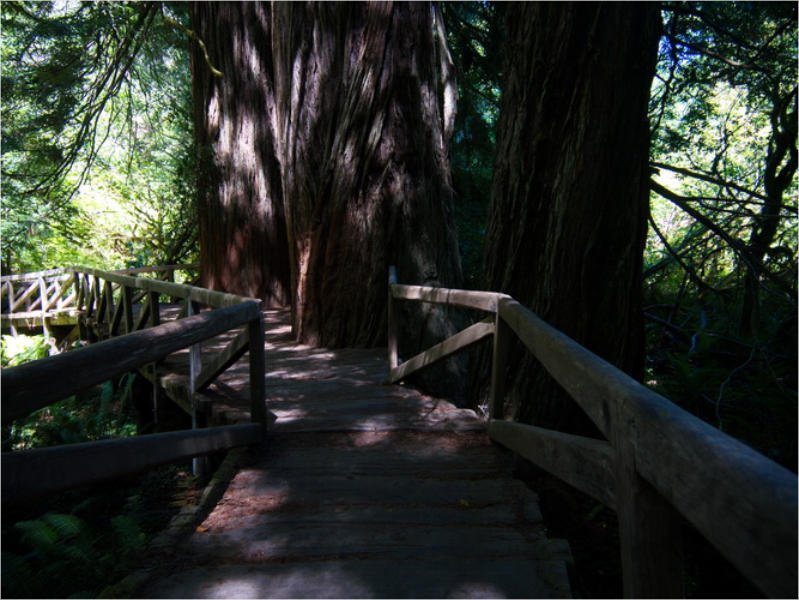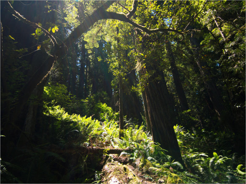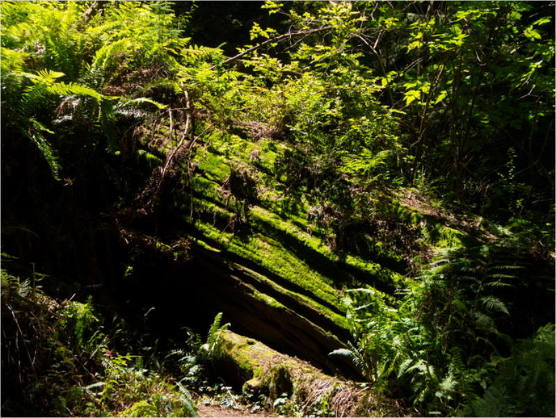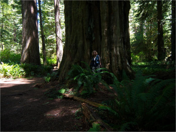 Der Morgen begann mit einem Kolibri, einem Leuchtturm in der Sonne und einem Vogelschwarm im Nebel.Aber lasst mich der Reihe nach erzählen:Heute Morgen strahlte die Sonne so schön, dass ich beschloss, nach dem Frühstück nochmal zum Leuchtturm zu fahren. Gesagt, getan. Gleich am Anfang des Weges blieb ich bei einem Kolibri hängen, der nervös um die bunten Blümchen flog. Am Parkplatz verquatschte ich mich dann noch eine ganze Weile mit einem älteren Ehepaar. Das war richtig nett. Der Weg zum Leuchtturm lohnte sich richtig. Erst im Morgenlicht zeigte sich der kleine Leuchtturm in seiner vollen Pracht. Auf dem Rückweg vom Leuchtturm ging ich dann noch im Besuchszentrum zum Redwood NP vorbei und besorgte mir Infomaterial.Auf der Suche nach den Seelöwen fuhr ich zum Fischereihafen von Kaum war ich dort, zog Nebel auf. Die Lichtstimmung war schon klasse. Im Nebel scheint alles viel leiser zu sein. Vielleicht täusche ich mich da ja. Ich war auf jeden Fall sofort fasziniert von dieser Lichtstimmung. Ach ja, auf der Suche nach Seelöwen traf ich für diese Gegend sehr seltene Raubtiere. Im Hafenbacken teilten sich Seelöwen und Vögel eine schwimmende Plattform.Es war schon ein tolles Schauspiel, das sich hier im Nebel bot. Die Strandseite hatten die Vögel für sich erobert, denn Spaziergänger waren in diesem Nebel dort nicht auszumachen.Auch wenn die Fotos nicht so viel hergeben, das Spektakel war schon einmalig. Ich kam mit einer Fotografin ins Gespräch. Wie sich herausstellte, kam sie aus Australien. Mit ihrem Mann war sie schon ein paar Monate mit einem Trailer unterwegs. Dieser stand nun auf dem Trailerparkplatz, während sie mit dem Auto bequem an den Hafen gefahren waren. Sie erzählte mir, dass sie mich gestern schon im Cape Sebastian SP gesehen hätten. Wie peinlich! Ich hatte heute nämlich die gleichen Klamotten an wie gestern.Sie gab mir dann noch als Tipp mit auf den Weg, unbedingt im nahegelegenen Chart Room Restaurant ein Krabbenbrötchen zu essen. Darauf musste ich aber eine ganze Weile warten, da das Restaurant erst um 11:00 Uhr öffnete. Das Warten hat sich aber gelohnt! Mit 15 $ war das Krabbenbrötchen, das einen riesigen Salat als Beilage hatte, zwar nicht günstig, dafür aber super Lecker. war wirklich super lecker. Das war echt ein interessanter Vormittag, wenn auch ganz anders als geplant.Ich hatte interessante Gespräche mit einem sehr alten Ehepaar aus dem Ort, einer Lady aus einem Vorort und einem Paar aus der Nähe von Brisbane, Australien, Der Nebel begleitete mich noch eine ganze weile auf meiner Tour in die Redwoods.Erst gegen 12:00 Uhr enterte ich den Ich hielt dann auch gleich an der ersten Parkmöglichkeit.Wie sich herausstellte stand ich genau an einem kurzen Trail. Dieser war mit einer knappen 1/2 Meile Oneway genau das Richtige für den Einstieg.Ich war sofot hin und weg. Diese Ruhe, dieser Geruch und diese schönen großen alten Bäume.Mir ging sofort das Herz auf.Wieder zurück am Auto beeilte ich mich ins Prairie Creek Visitor Center zu kommen. In diesem Zauberwalt wollte ich auf jeden Fall noch etwas mehr laufen. Im Visitor Center bekam ich dann auch den Tipp für meinen nächsten Trail.Dieser Trail führte mich direkt hoch in den Wald. Das war schon etwas anderes, als an der Avenue de Giants herumzulaufen. Hier war man in einem richtigen Wald. Aber auch hier waren auch hier die Umfänge der Bäume unglaublich. Gleich zu Anfang überquert man den kristallklaren Prairie Creek. Dort soll man im Winter und Frühjahr Lachse laichen sehen. Dafür war ich schon etwas zu spät. Ist man über die Brücke, führt der Weg beständig auf einem schönen Waldweg bergauf. Je höher man kommt umso atemberaubender werden die Blicke in den Wald hinunter. OK, hinauf ist auch nicht zu verachten. Aber seht selbst:Wegen den Größenverhältnissen habe ich mal ein Selfie gemacht. ….Mann ist der Dickmann :-)Dagegen sehe ja selbst ich schmal aus.Bevor ich es vergesse: Neben den dicken Bäumen gab es noch ganz zarte Blümchen wie zB.. diese Lilie zu bewundern.Wer noch nicht genug hat von den Redwoods, kann sich ja noch das nachfolgende Filmchen anschauen. Aber seht es mir bitte nach, ich übe noch :-)Nach diesem schönen Trail bin ich noch einmal ins Visitor Center.Ich wollte mich vergewissern, dass meine Wegbeschreibung zum Fern Canyon richtig war. Dort quatschte mich der Ranger so strubelig, dass ich doch fast von hier aus zum Fern Canyon gelaufen wäre. Erst als ich zum Trailhead lief und noch ein Stück über den Board Walk, kam es mir. Nee, so weit wollte ich nun auch nicht laufen. Bis zum Erreichen des Fern Canyons wären es von hier aus ca. 4 Meilen gewesen und ich hätte dies ja alles wieder zurück laufen müssen. Ich ging dann recht schnell zurück zum Auto. Manchmal bin ich echt ein Hasenhirn.Aber ich muss auch gestehen, dass mir dieser Weg schon gleich am Anfang so gut gefallen hat, dass ich ihn mit etwas mehr Zeit gerne gelaufen wäre. Da ich aber bereits etwas spät war, wollte ich nichts riskieren.Gegen 15:00 Uhr war ich auf dem Weg. Die Fahrt führte über eine 8 Meilen lange, unbefestigte, schmale Straße mitten durch den Wald. Ich kam dann an eine Bezahlstation, da ich den Annual Pass hatte, konnte ich einfach durchfahren. Kurz darauf kam ich an einem Strand vorbei. Wieso sagt einem das niemand? Ich überlegte kurz, ob ich anhalten sollte, beschloss aber, erst einmal bei meinem Plan zu bleiben und direkt zum Fern Canyon zu fahren. Auf dem Rückweg musste ich hier ja sowieso wieder vorbei und wenn es die Zeit zulassen würde, könnte ich dann hier etwas verweilen. Jetzt würde ich eh nur auf heißen Kohlen sitzen und hätte keine Ruhe. Auf der Strecke sah ich noch die Folgen eines heftigen Unfalls. Polizei und Abschleppwaren waren zum Glück schon da und der Family war wohl nix passiert. Das Auto war allerdings Schrott. Die haben mir richtig leidgetan, wie sie so betölpelt am Straßenrand standen.Gegen 16:00 Uhr erreichte ich den Eigentlich wollte