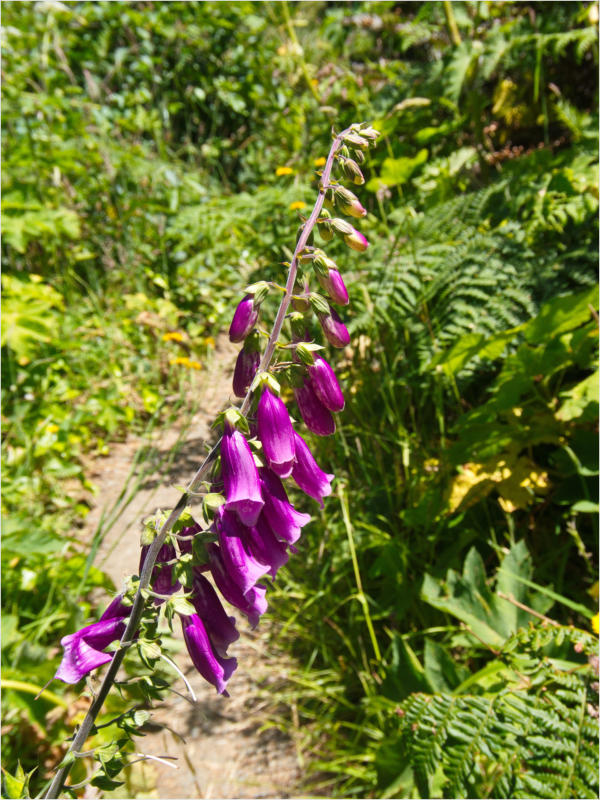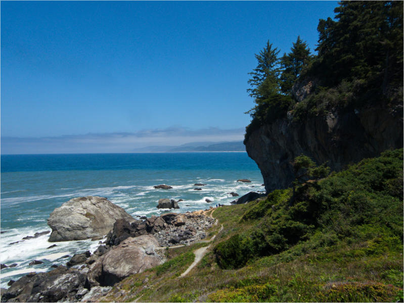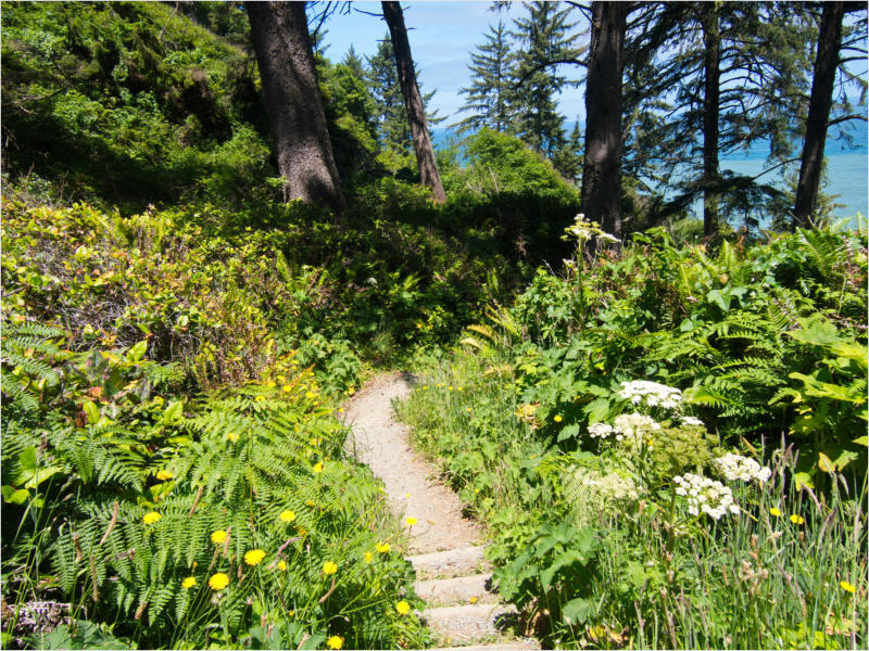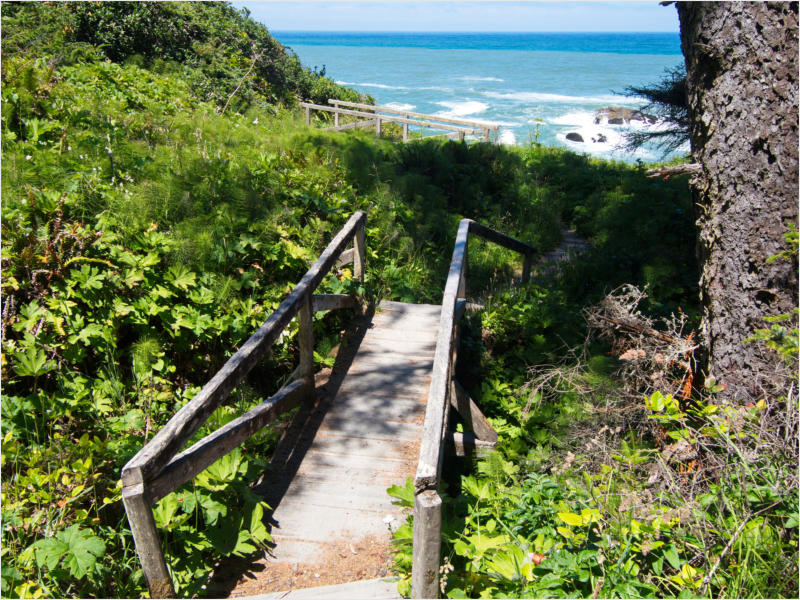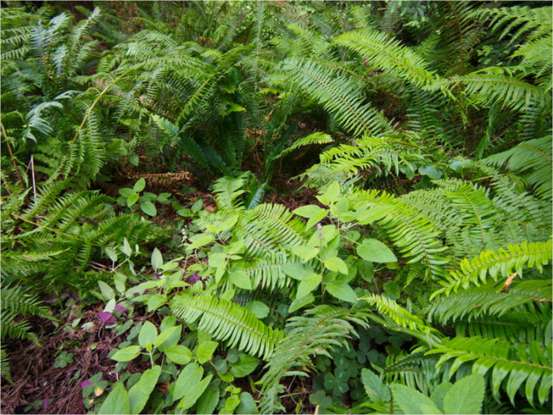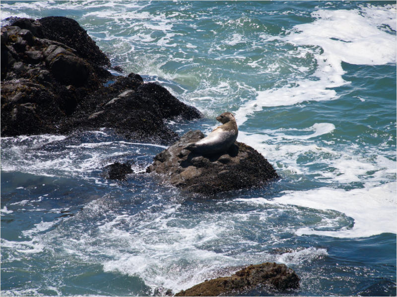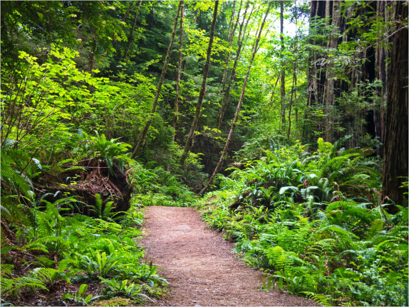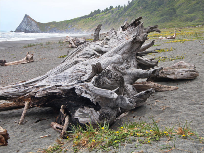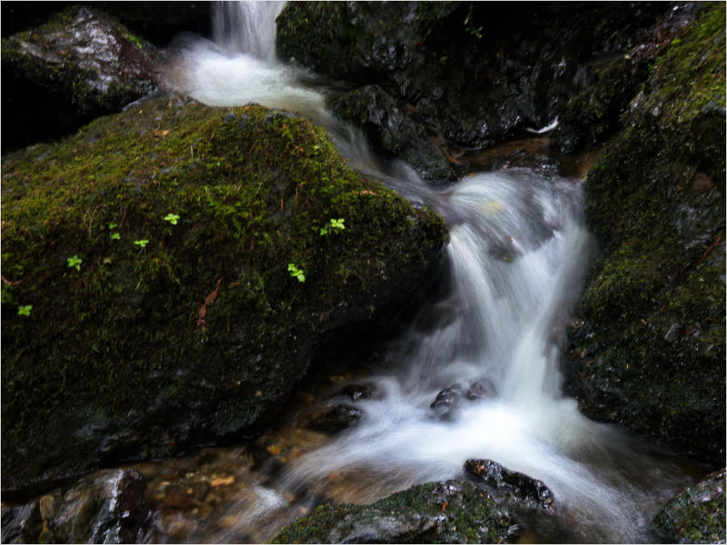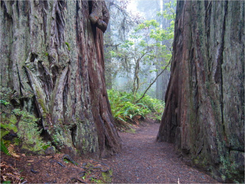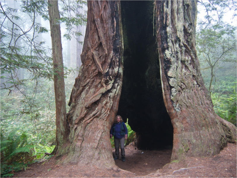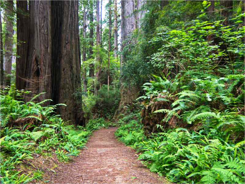 Gestern Abend hab ja noch hin und her überlegt, ob ich heute – wie geplant – erneut in die Redwoods fahren wollte. Letztendlich traf das Wetter die Entscheidung. Obwohl der Tag gestern so sonnig geendet hatte, war heute Morgen alles grau in grau. Also genau das richtige Wetter, um in den Wald zu fahren.Dies tat ich dann auch nach dem Frühstück. Auf dem Weg zum Redwood NP fing es sogar an, etwas zu regnen. Bis ich am Parkplatz am Lady Bird Johnson Trailwar, hörte es aber zum Glück auf. Ich weiß nicht, ob ich mich im Regen aufgerafft hätte, diesen Weg zu laufen. Es fiel mir so schon schwer, denn es war etwas kühl im Wald. Aber was soll’s: „Nur die Harten kommen in den Garten“ und so zog ich in den Wald. Der Weg war auch ganz nett. Ich lief den Trail gegen den Uhrzeigersinn. Ich hatte ja gehofft, dass sich der Nebel im Wald verziehen würde. Leider handelte es sich um richtigen Hochnebel und der hing im Wald fest. Nachdem ich mich mit den Temperaturen angefreundet hatte, fand ich es gar nicht so uninteressant durch den nebligen Wald zu laufen. Das hatte was von einem Edgar Wallace-Roman. Bis auf die schönen Blümchen, die kommen in diesen Romanen nie vor. Die Lichtstimmung war meist sehr schön, da sich ab und an die Sonne durch den Nebel quetschte. Und da der Lady Bird Johnson-Trail gerade einmal eine Meile lang war, stand ich nach einer ¾ Stunde schon wieder auf dem Parkplatz. Da sich der Nebel immer noch nicht verzogen hatte fuhr ich gleich weiter zum Den Parkplatz hatte ich dank Navilinchen ja recht einfach gefunden. Aber hier stellte sich plötzlich die Frage: „Wo geht der Trail los?“ Eine Ausschilderung war auf den ersten Blick nicht zu finden. Zum Glück entdeckte ich einen Ranger, der hier bei Reinigungsarbeiten war. Dieser wies mir den Weg. Ohne ihn wäre ich wohl unverrichteter Dinge wieder gefahren. Mit Hilfe vom Ranger lief ich in die richtige Richtung und fand dann auch tatsächlich ein Wegweiser. Dieser wies daraufhin, dass es noch 0,1 Meilen bis zum Trail waren. Darauf muss man erst einmal kommen. Der Weg führte in den Wald. Hier ging es beständig bergauf. Das mag ich ja ganz gerne, da es dafür dann auf dem Rückweg meist bergab geht. Dieser Wald war ganz anders, als der am Lady Bird Johnson-Trail. Hier konnte man riesige Baumwurzeln bestaunen, und die Seiten des Weges waren mit dichten Farnen bewachsen. Wahnsinn…..was für ein Zauberwald!Es dauerte nicht lange, bis ich an eine kleine Brücke kam. Hier war dann auch schon der Wasserfall. Das Laub und der Farn rund um den Fall sind so dicht bewachsen, dass ich hier ganz ohne Graufilter fotografieren konnte. Und da ich den Wasserfall ganz für mich alleine hatte, konnte ich mich so richtig austoben.Schon bei den ersten Fotos bemerkte ich, dass mir am Stativ eine Schaube fehlte. Ups! Da hatte ich ja wirklich Glück, dass die Kamera noch nicht hinunter gefallen war, denn ich hatte die Kamera schon auf dem Parkplatz auf das Stativ gepflanzt und während des kurzen Trailsgeschultert. Das hätte auch ein böses Ende nehmen können, dachte ich so bei mir. Zum Glück wusste ich jetzt noch nicht, was später passieren würde. Als eine Gruppe Teenager zur Brücke kamen, wurde es langsam Zeit zurückzugehen. Ich schnappte also meine Kamera mit dem Stativ und trat den Rückzug an. Die Kamera ließ ich erst einmal auf dem Stativ, denn den Gurt hatte ich leider im Auto gelassen und da es auf dem Hinweg ja schon kein Problem gab, hoffte ich, dass es auch auf dem Rückweg dabei bleiben würde. Natürlich griff ich alles etwas kürzer und war sehr bedacht, dass Stativ nicht zu drehen.Auf dem Rückweg nahm ich den Boden genau unter die Lupe. Vielleicht hatte ich ja Dusel und fand die fehlende Schraube. Dem war nicht so. Es kam leider schlimmer. Ehe ich mich versah, fiel die Kamera vom Stativ und kullerte sogleich etwas den Hang hinab. Mir blieb das Herz stehen, denn ich begriff sofort, dass, wenn die Kamera weiter fallen würde, ich wohl keine Chance hätte, an sie heranzukommen, da der Wanderweg in eine andere Richtung als der Abhang verlief. Man glaubt gar nicht, was einem so alles in Sekundenbruchteilen (länger hatte der Fall wohl gar nicht gedauert) durch den Kopf gehen kann. Zum Glück wurde die Kamera durch den dichten Farn nach ca. einem Meter gebremst. Jetzt galt es nur (was heißt hier eigentlich „NUR“), die Kamera wieder vorm Abgrund zu retten. Wie es halt immer so ist, kommt gerade in solchen Augenblicken niemand vorbei, um zu helfen. Ich legte also das Stativ und den Rucksack beiseite, setzte mich auf den Hosenboden und hangelte mich vorsichtig den Abhang hinunter, immer bedacht, die Kamera durch meine Bewegungen nicht weiter nach unten zu stoßen. Ich schaffte es dann glücklicherweise, den Fuß unter die Kamera zu legen und hangelte mich vorsichtig nach unten. Zu meiner Erleichterung konnte ich die Kamera greifen. Ich legte sie sogleich hoch auf den Weg und robbte dann selbst vorsichtig zurück. Eine erste Untersuchung ergab erst einmal keine Schäden. Die Kamera war ja auch weich gelandet. Später musste ich dann feststellen, dass am Batteriefach die Feder etwas gelitten hatte. Zum Glück war nicht mehr passiert. Da ich die Wanderung nicht bis zum Ende gelaufen war, hatte ich etwas Zeit eingespart. Diese wollte ich mit der Beobachtung von Elks auffüllen. Aber Elks waren wohl gerade aus. Es gab dann zwar mal eine Menschenan-sammlung am Highway wegen einer Gruppe Rotwild, aber irgendwie hatte ich keine Lust, mich auch noch dazu zu gesellen. Es standen schon genug Fahrzeuge am Rand. Um ½ 12 stand ich am Visitor Center des Eigentlich wollte ich nur die kleinen Totems fotografieren, aber da ich nun mal hier war, fragte ich auch gleich noch nach einer guten Stelle zur Elk-Beobachtung. Der Mitarbeiter gab mir zwar einen Tipp, aber an der angegebenen Stelle konnte keine finden. Als Ersatz fuhr ich dann für ein ½ Stündchen an einen Strand. Die Temperaturen waren zwar recht angenehm, aber da die Sonne