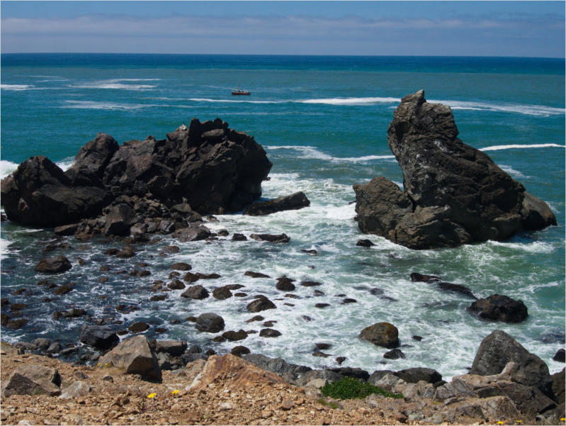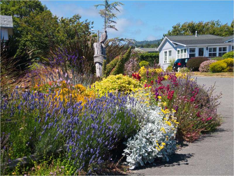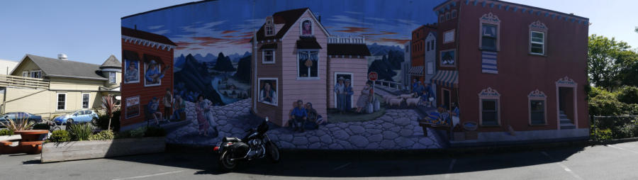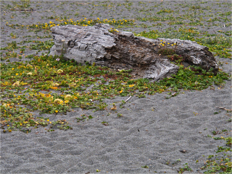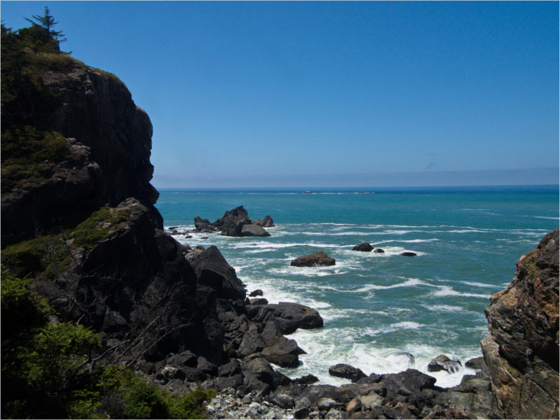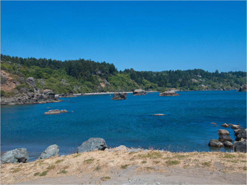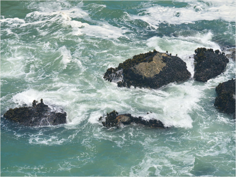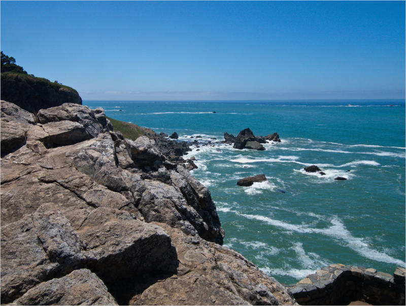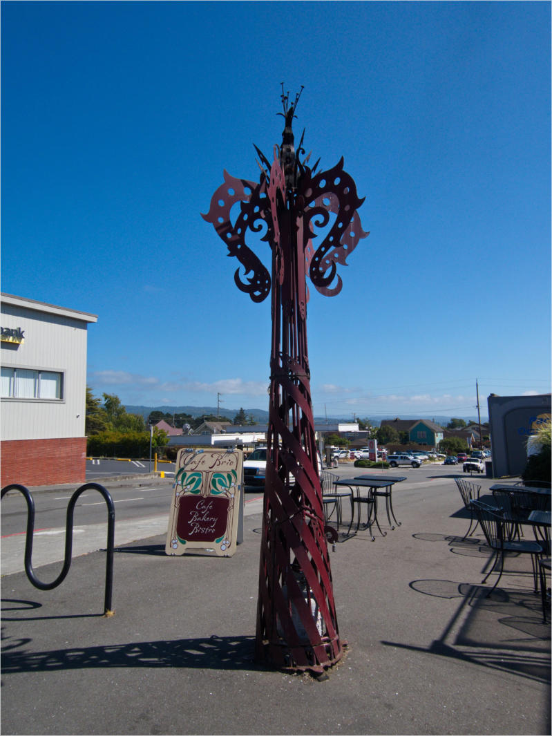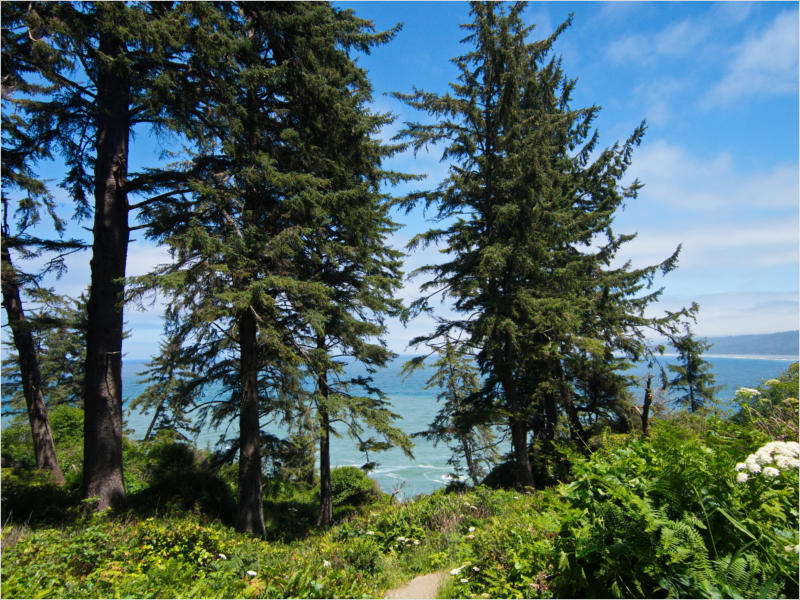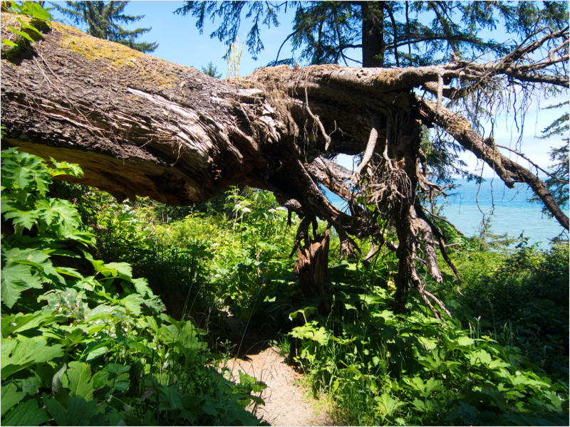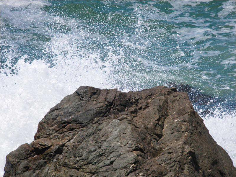 Gestern Abend hab ja noch hin und her überlegt, ob ich heute – wie geplant – erneut in die Redwoods fahren wollte. Letztendlich traf das Wetter die Entscheidung. Obwohl der Tag gestern so sonnig geendet hatte, war heute Morgen alles grau in grau. Also genau das richtige Wetter, um in den Wald zu fahren.Dies tat ich dann auch nach dem Frühstück. Auf dem Weg zum Redwood NP fing es sogar an, etwas zu regnen. Bis ich am Parkplatz am Lady Bird Johnson Trailwar, hörte es aber zum Glück auf. Ich weiß nicht, ob ich mich im Regen aufgerafft hätte, diesen Weg zu laufen. Es fiel mir so schon schwer, denn es war etwas kühl im Wald. Aber was soll’s: „Nur die Harten kommen in den Garten“ und so zog ich in den Wald. Der Weg war auch ganz nett. Ich lief den Trail gegen den Uhrzeigersinn. Ich hatte ja gehofft, dass sich der Nebel im Wald verziehen würde. Leider handelte es sich um richtigen Hochnebel und der hing im Wald fest. Nachdem ich mich mit den Temperaturen angefreundet hatte, fand ich es gar nicht so uninteressant durch den nebligen Wald zu laufen. Das hatte was von einem Edgar Wallace-Roman. Bis auf die schönen Blümchen, die kommen in diesen Romanen nie vor. Die Lichtstimmung war meist sehr schön, da sich ab und an die Sonne durch den Nebel quetschte. Und da der Lady Bird Johnson-Trail gerade einmal eine Meile lang war, stand ich nach einer ¾ Stunde schon wieder auf dem Parkplatz. Da sich der Nebel immer noch nicht verzogen hatte fuhr ich gleich weiter zum Den Parkplatz hatte ich dank Navilinchen ja recht einfach gefunden. Aber hier stellte sich plötzlich die Frage: „Wo geht der Trail los?“ Eine Ausschilderung war auf den ersten Blick nicht zu finden. Zum Glück entdeckte ich einen Ranger, der hier bei Reinigungsarbeiten war. Dieser wies mir den Weg. Ohne ihn wäre ich wohl unverrichteter Dinge wieder gefahren. Mit Hilfe vom Ranger lief ich in die richtige Richtung und fand dann auch tatsächlich ein Wegweiser. Dieser wies daraufhin, dass es noch 0,1 Meilen bis zum Trail waren. Darauf muss man erst einmal kommen. Der Weg führte in den Wald. Hier ging es beständig bergauf. Das mag ich ja ganz gerne, da es dafür dann auf dem Rückweg meist bergab geht. Dieser Wald war ganz anders, als der am Lady Bird Johnson-Trail. Hier konnte man riesige Baumwurzeln bestaunen, und die Seiten des Weges waren mit dichten Farnen bewachsen. Wahnsinn…..was für ein Zauberwald!Es dauerte nicht lange, bis ich an eine kleine Brücke kam. Hier war dann auch schon der Wasserfall. Das Laub und der Farn rund um den Fall sind so dicht bewachsen, dass ich hier ganz ohne Graufilter fotografieren konnte. Und da ich den Wasserfall ganz für mich alleine hatte, konnte ich mich so richtig austoben.Schon bei den ersten Fotos bemerkte ich, dass mir am Stativ eine Schaube fehlte. Ups! Da hatte ich ja wirklich Glück, dass die Kamera noch nicht hinunter gefallen war, denn ich hatte die Kamera schon auf dem Parkplatz auf das Stativ gepflanzt und während des kurzen Trailsgeschultert. Das hätte auch ein böses Ende nehmen können, dachte ich so bei mir. Zum Glück wusste ich jetzt noch nicht, was später passieren würde. Als eine Gruppe Teenager zur Brücke kamen, wurde es langsam Zeit zurückzugehen. Ich schnappte also meine Kamera mit dem Stativ und trat den Rückzug an. Die Kamera ließ ich erst einmal auf dem Stativ, denn den Gurt hatte ich leider im Auto gelassen und da es auf dem Hinweg ja schon kein Problem gab, hoffte ich, dass es auch auf dem Rückweg dabei bleiben würde. Natürlich griff ich alles etwas kürzer und war sehr bedacht, dass Stativ nicht zu drehen.Auf dem Rückweg nahm ich den Boden genau unter die Lupe. Vielleicht hatte ich ja Dusel und fand die fehlende Schraube. Dem war nicht so. Es kam leider schlimmer. Ehe ich mich versah, fiel die Kamera vom Stativ und kullerte sogleich etwas den Hang hinab. Mir blieb das Herz stehen, denn ich begriff sofort, dass, wenn die Kamera weiter fallen würde, ich wohl keine Chance hätte, an sie heranzukommen, da der Wanderweg in eine andere Richtung als der Abhang verlief. Man glaubt gar nicht, was einem so alles in Sekundenbruchteilen (länger hatte der Fall wohl gar nicht gedauert) durch den Kopf gehen kann. Zum Glück wurde die Kamera durch den dichten Farn nach ca. einem Meter gebremst. Jetzt galt es nur (was heißt hier eigentlich „NUR“), die Kamera wieder vorm Abgrund zu retten. Wie es halt immer so ist, kommt gerade in solchen Augenblicken niemand vorbei, um zu helfen. Ich legte also das Stativ und den Rucksack beiseite, setzte mich auf den Hosenboden und hangelte mich vorsichtig den Abhang hinunter, immer bedacht, die Kamera durch meine Bewegungen nicht weiter nach unten zu stoßen. Ich schaffte es dann glücklicherweise, den Fuß unter die Kamera zu legen und hangelte mich vorsichtig nach unten. Zu meiner Erleichterung konnte ich die Kamera greifen. Ich legte sie sogleich hoch auf den Weg und robbte dann selbst vorsichtig zurück. Eine erste Untersuchung ergab erst einmal keine Schäden. Die Kamera war ja auch weich gelandet. Später musste ich dann feststellen, dass am Batteriefach die Feder etwas gelitten hatte. Zum Glück war nicht mehr passiert. Da ich die Wanderung nicht bis zum Ende gelaufen war, hatte ich etwas Zeit eingespart. Diese wollte ich mit der Beobachtung von Elks auffüllen. Aber Elks waren wohl gerade aus. Es gab dann zwar mal eine Menschenan-sammlung am Highway wegen einer Gruppe Rotwild, aber irgendwie hatte ich keine Lust, mich auch noch dazu zu gesellen. Es standen schon genug Fahrzeuge am Rand. Um ½ 12 stand ich am Visitor Center des Eigentlich wollte ich nur die kleinen Totems fotografieren, aber da ich nun mal hier war, fragte ich auch gleich noch nach einer guten Stelle zur Elk-Beobachtung. Der Mitarbeiter gab mir zwar einen Tipp, aber an der angegebenen Stelle konnte keine finden. Als Ersatz fuhr ich dann für ein ½ Stündchen an einen Strand. Die Temperaturen waren zwar recht angenehm, aber da die Sonne