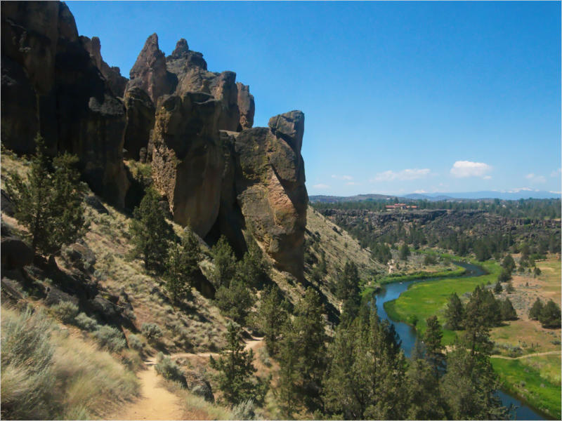 Das Letzte: Gute Karten sind schon die halbe Wanderung. Wenn ich mich im Vorfeld besser informiert hätte, wäre meine Wanderung nur halb so lange gewesen. Schön blöd!Meilen: 63Wetter: Morgens sonnige 20 °C. Um die Mittagszeit wurden es wieder 35 °C. Abends immer noch 30 °C.Motel: Days Inn, Bend, OR, +++ (siehe Beschreibung von gestern)Abendessen: Beim Mexikaner in DowntownDie Margarita war richtig lecker. Das Essen war nicht schlecht, aber auch nicht mehrFotos: Smith Rock State Park, OR
