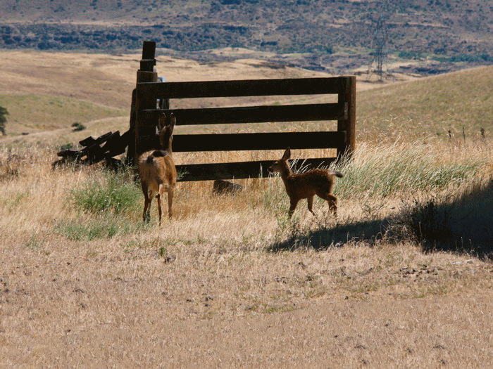 Auf der Ranch schreckte ich dann erst einmal eine Ricke mit ihrem Kitz auf. Leider hüpften sie recht schnell davon. Wie