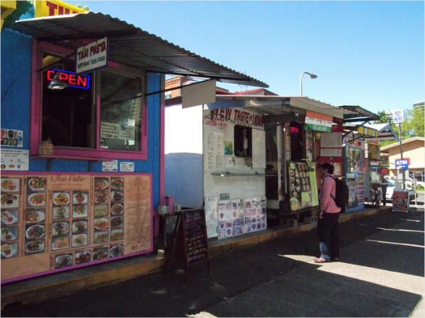 einer ganzen Reihe von Food-Trucks vorbei. Am liebsten hätte ich mir schon hier den Bauch vollgeschlagen, aber noch