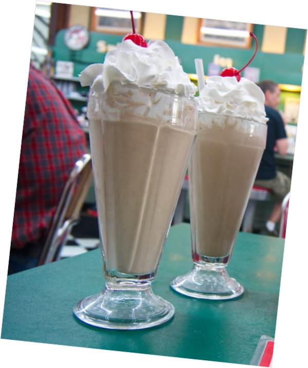 Bedienung noch je einen Chocolat-Malt zum Nachtisch.