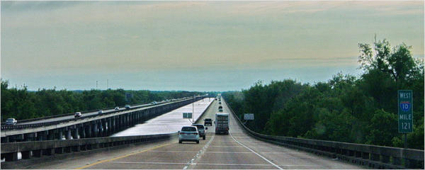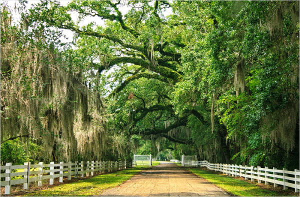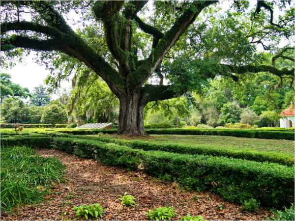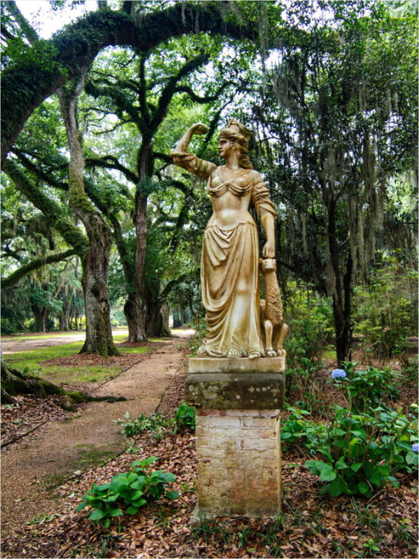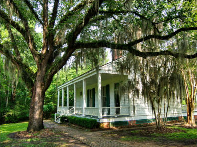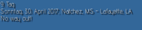 Heute saßen wir erst einmal in Natchez fest. Seit etwa 5:00 Uhr fegte ein Hurrikan der Stufe 3 oder 4 über die Stadt. Es schüttete wie aus Eimern und die Blitze, die offensichtlich in den Mississippi einschlugen, schepperten nicht schlecht. Kein Wunder, dass wir davon wach wurden. So gegen ½ 6 stand ich dann auf und schaute zu, wie der Regen gegen die Zimmerscheibe prasselte. Da Gabi auch langsam wach wurde, kochte ich uns erst einmal einen Kaffee. Da wir noch nie in solch ein Wetter geraten waren, schalteten wir sogar den Fernseher an. Wie wir sehen konnten, war Natchez ganz gut weggekommen. Es schüttete zwar wie aus Eimern und es war gar nicht daran zu denken, auch nur ans Auto zu kommen, aber anderen Ortschaften ging es weitaus schlechter. Es gab sogar Tote. Da uns noch etwas Zeit bis zum Frühstück blieb, ordneten wir schon einmal unser Gepäck. Gegen 7:00 Uhr gingen wir runter zum Frühstück. Was wir hier sahen, versetzte uns wirklich in Erstaunen. Dass der Frühstücksbereich recht groß war, konnten wir gestern schon sehen, aber dass es sogar richtige Teller und Tassen gab, hätten wir nicht zu träumen gewagt. Auch ansonsten ließ das Frühstücksbuffet keine Wünsche übrig. Kein Wunder, dass wir hier die nächsten Stunden verbrachten. Erst gegen 10:00 Uhr ließ der Regen langsam nach. Wir entschieden uns dafür, uns wenigstens noch etwas von der Altstadt anzuschauen. Immerhin wurden die schönen Häuser in Natchez ja immer sehr gelobt.Als Erstes hielten wir an dem nahen Aussichtspunkt. So langsam wurde es hell über dem Mississippi. Abschließend fuhren wir erst einmal etwas kreuz und quer durch die Straßen. Hier musste man schon sehr auf abgebrochene Äste achten. Obwohl es inzwischen ganz aufgehört hatte zu regnen, waren die Straßen immer noch wie ausgestorben. Wir hatten daher kein Problem, einen Parkplatz zu finden. Die nächste halbe Stunde spazierten wir durch die Straßen und bewunderten die schönen Fassaden der herrschaftlichen Villen. Irgendwie war es doch schon etwas komisch, dass wir hier ganz alleine unterwegs waren. Unsere Eindrücke findet ihr in der nachfolgenden Slideshow.Zum Abschluss hielten wir noch einmal an einem Aussichtspunkt zum Mississippi. Auf dem Foto kann man recht gut sehen, wie hoch der Ole Man River gestiegen war. Wahnsinn!!!So langsam mussten wir uns nun aber sputen, wenn wir wenigstens noch einen Teil unserer heutigen Pläne in die Tat umsetzen wollten. Um an unser erstes Ziel zu kommen, mussten wir erst einmal auf die andere Seite des Mississippi. Der Weg führte natürlich über die schöne Brücke. Als wir näherkamen sahen wir zu unserem Erstaunen, dass es sich hierbei um zwei Brücken handelte. Das war uns gestern und auch heute beim Fotografieren so gar nicht aufgefallen. Die Landesgrenze zu Lousiana befand sich in der Mitte der Brücke. So waren wir noch nie in einem Bundesstaat gelandet. Nachdem wir Natchez hinter uns gelassen hatten, ging die Fahrt gemächlich über den HW 131, später über den HW 15. Ich war echt gespannt, ob wir unser erstes Ziel, das sich in einem kleinen Park (Deer Park) befand, überhaupt finden, bzw. wegen der Regenfälle der letzten Nacht, erreichen würden. Vor Ort war dann alles einfacher als gedacht. Der Park war ausgeschildert und keine fünf Minuten später standen wir vor dieser verwitterten Schönheit.Ich freute mich wie ein kleines Kind. Was war das klasse! Überhaupt, diese ganze Szenerie in diesem kleinen Park mit den Pfahlbauten im Hintergrund und den verwilderten Bäumen und Sträuchern hatte etwas. Klar, dass unsere Kameraauslöser zum Glühen kamen. Gerne hätte ich hier eine Nacht verbracht. Die Gegend hatte schon etwas Kurioses. Um 12:30 Uhr fuhren wir weiter. Zum Glück waren wir auf dem Highway recht gemächlich unterwegs, denn eine Schildkröte kreuzte unsere Wege. Ich schaute noch, dass sie sicher die andere Straßenseite erreichte, aber dann ging es wirklich weiter. Bis zu unserem nächsten Ziel hatten wir ein paar Meilen zu fahren. Da wir erst einmal zurück nach Natchez mussten, befanden wir uns wieder am Mississippi. Wie schon gestern, fuhren wir auch heute wieder auf dem Blueshighway (HW 61). Diesmal war er allerdings gar nicht so bluesig, sondern fast durchgängig zweispurig und grün, soweit das Auge reichte. Wir kamen gut voran. Erst an der Grenze zu Louisiana kamen wir kurz zum Stoppen. Zum einen wegen einem schönen Schild und zum anderen wegen dem Louisiana Welcome Center. Hier machten wir nicht nur eine Pippipause, sondern deckten uns auch noch mit Infomaterial ein. Kurz nach 14:00 Uhr erreichten wir das Eingangshäuschen der Wir fuhren die beeindruckende Einfahrt entlang, wo wir wegen der schön bemoosten Bäume schon gleich den ersten Stopp machen mussten. Am Parkplatz angekommen stellten wir unser treues Gefährt ab und gingen ins Kassenhäuschen und zahlten dort unseren Obolus von 12 $ pro Nase. Die nächste Tour durchs Haus sollte erst in einer ½ Stunde beginnen. Wir hatten also genug Zeit für den schönen Garten. Und der ist wirklich sehr schön! Neben prächtigen alten Bäumen und Pflanzen fanden wir schmucke kleine Brunnen und schattige Lauben. Wir kamen an Wirtschaftsgebäuden vorbei, entdeckten schöne Blümchen, scheue Katzen und flinke Vögel. Hier hätten wir ewig herumstrolchen können. Der Garten war weitläufiger als gedacht. Und obwohl die Sonne sogar durch die Wolken lugte und den verwilderten Garten noch lieblicher machte, blieb uns leider nicht genug Zeit, um das alte Gewächshaus zu inspizieren, denn es wurde langsam Zeit für unsere Hausführung und wir wollten nicht zu spät kommen. Ein paar Eindrücke gibt‘s trotzdem.Viel schneller als gedacht erreichten wir die prachtvolle Alle.e Da wir noch gut in der Zeit waren, hatten wir sogar noch genug Zeit, die fantasievollen Skulpturen entlang der Eichenallee zu bewundern. Vor dem Haus waren schon drei Paare mit unserem weiblichen Guide versammelt. Es wurde gerade abgefragt, wo jeder herkommt. Da ein