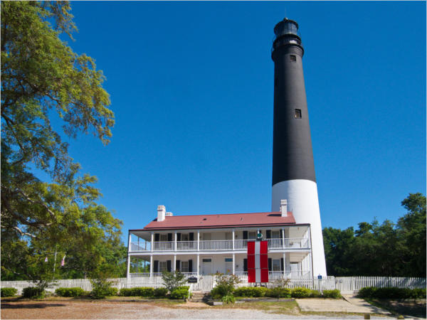 Bereits 1825 wurde ein ca. 24 Meter hoher Leuchtturm am Südeingang der Pensacola Bay gebaut. Da dieses