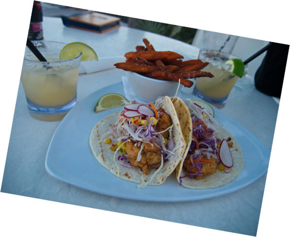 Abendessen gab es auch heute wieder in der nahen Strandbar. Die Shrimp-Tacos,