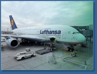 einen ersten Blick auf unseren Flieger, immerhin ein A380.