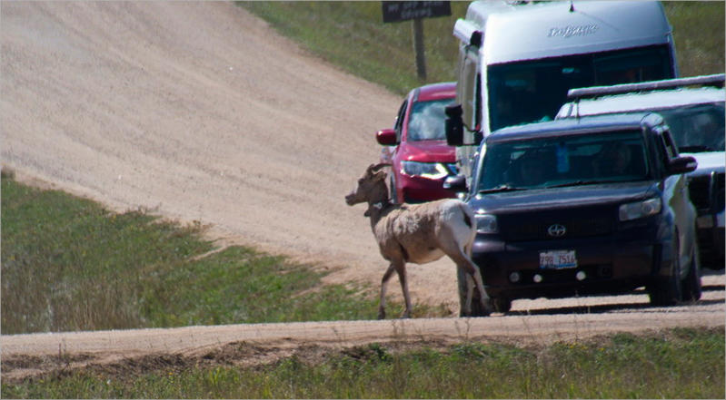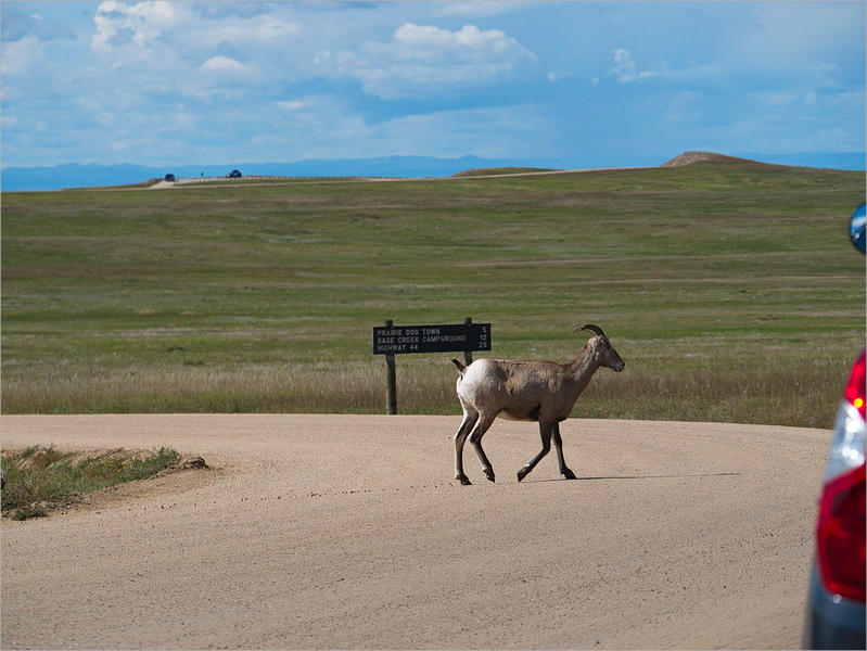 Ich fuhr daher wieder zurück zur Kreuzung mit den Dickhorn-Schafen .