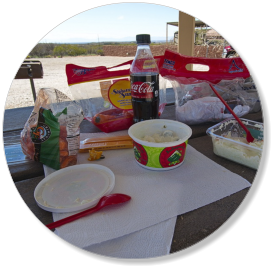 einen der Picknicktische aus und gönnten uns erst einmal eine ausgiebige