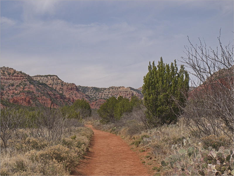 Der Weg (inzwischen waren wir auf dem Upper South Prong Trail) verlief in der Mitte eines recht breiten Canyons.