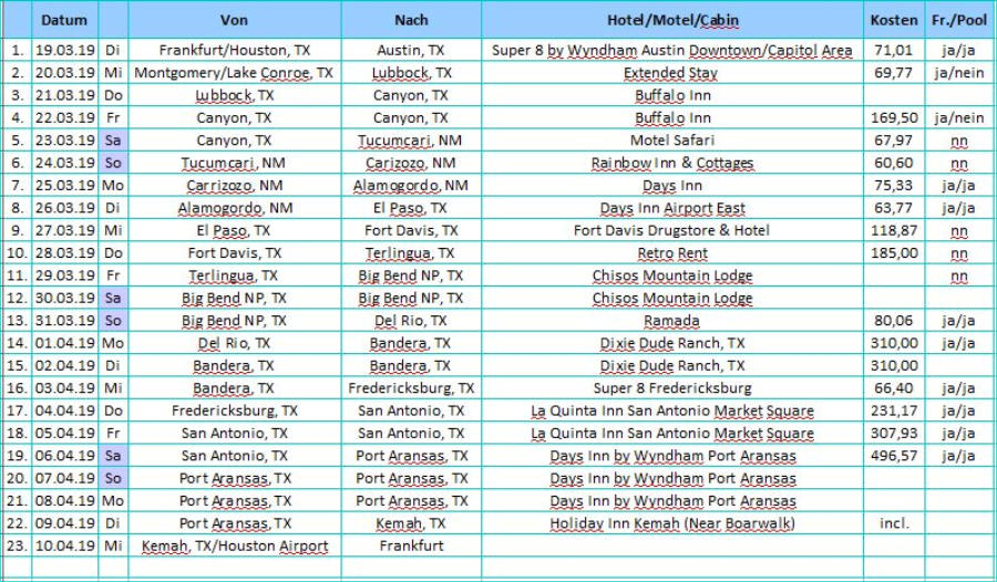 Bis auf ein Hotel gab es nicht wirklich etwas zu meckern und in diesem Motel in Lubbock sind wir ja nicht