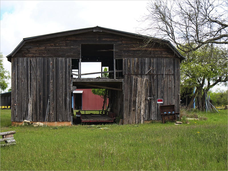 lediglich eine Tankstelle, ein paar Nebengebäude und die Rückansicht des Texas Farm Houses.