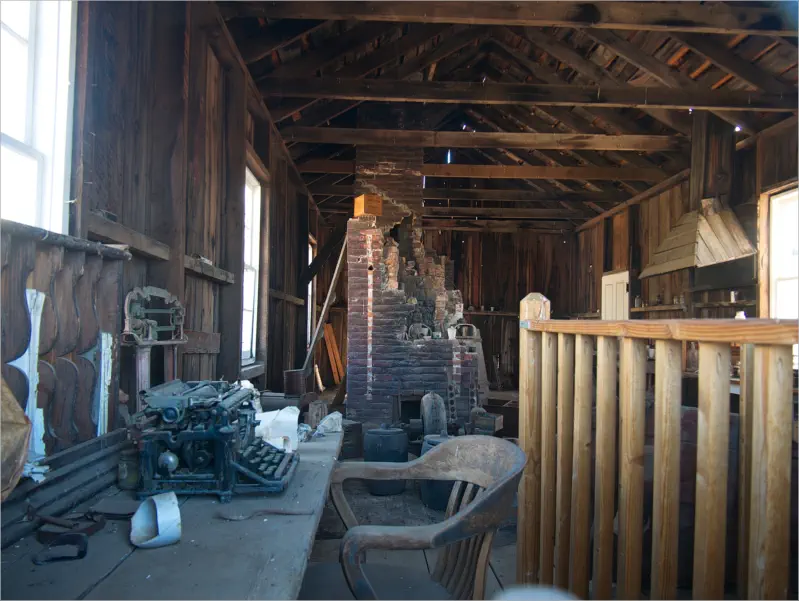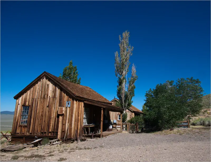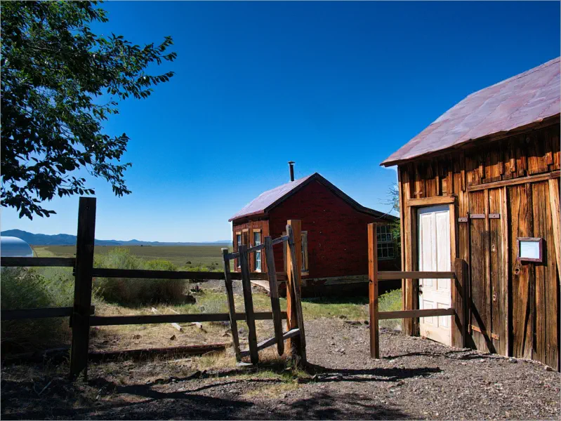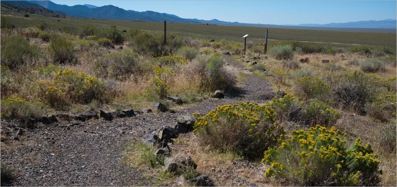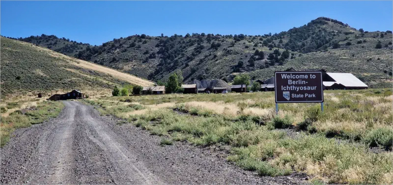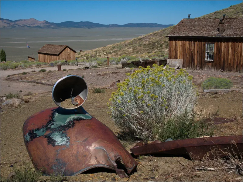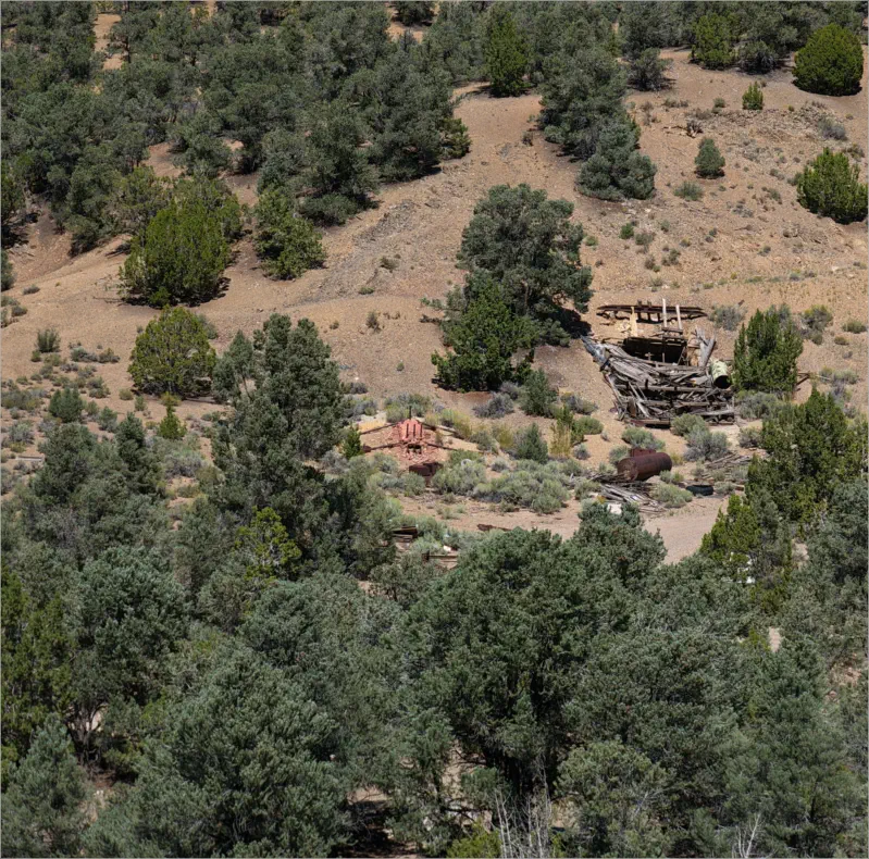 Vom Rastplatz aus hatte man sogar einen Blick auf eine recht gut erhaltene Mine und die schöne Bergwelt Nevadas.