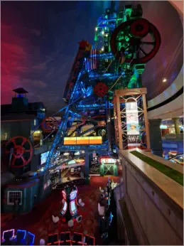 Vor der geschlossenen Austellungshalle gibt es einen Parkplatz mit einem anschaulichen Wandgemälde des