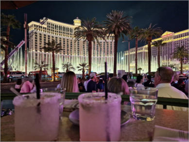 der Ecke der Terrasse geführt. Wie genial. Von hier hatten wir einen tollen Blick auf die Fountain vom Bellagio und